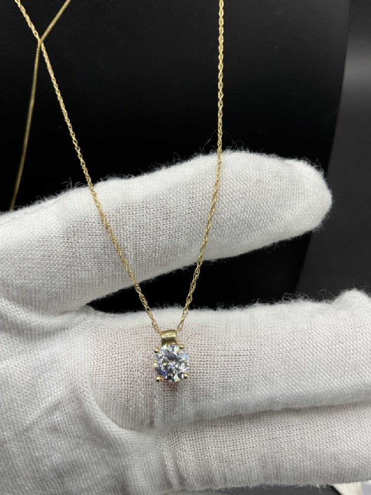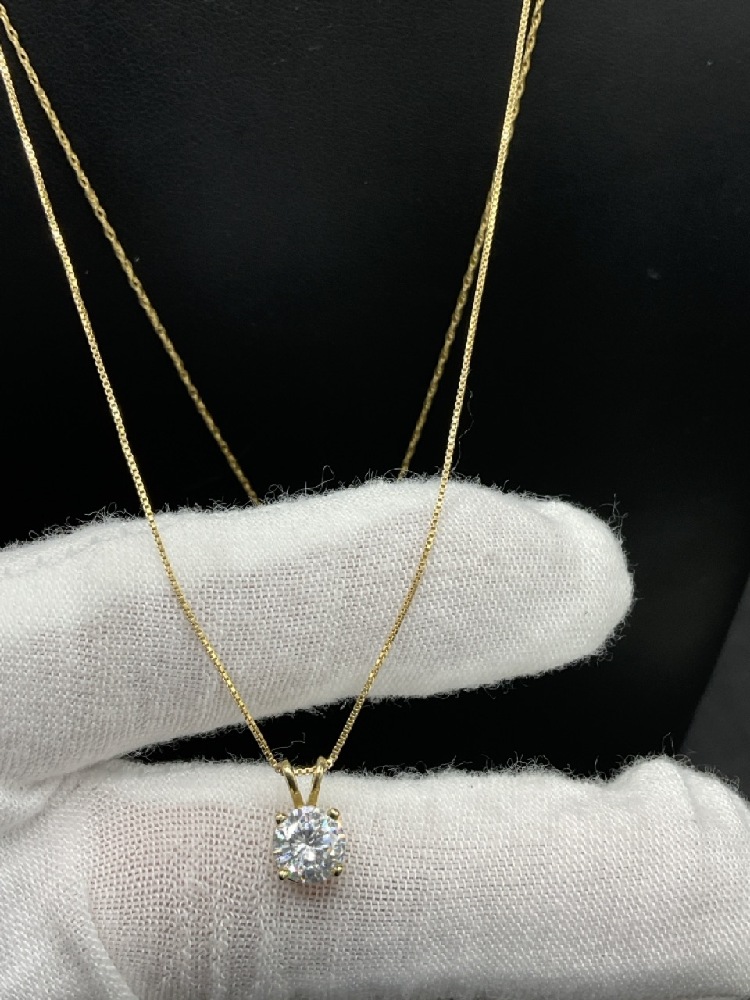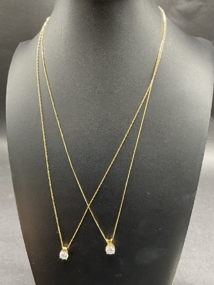 14K Yellow Gold 18” and 22” CZ Pendant Necklaces .