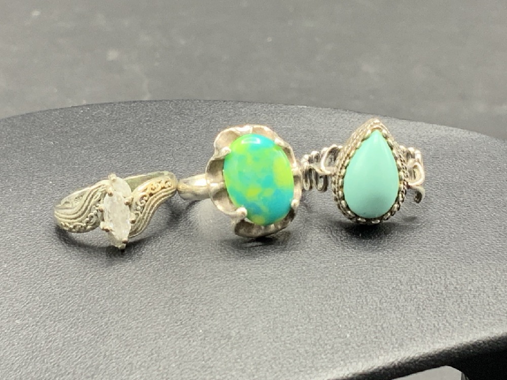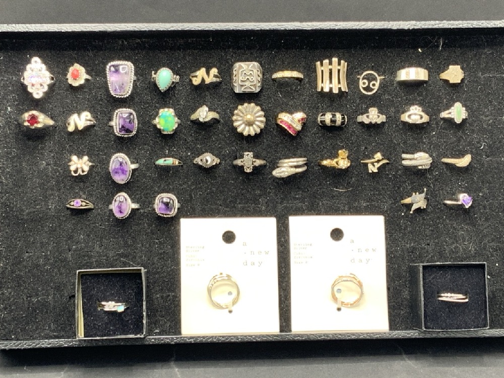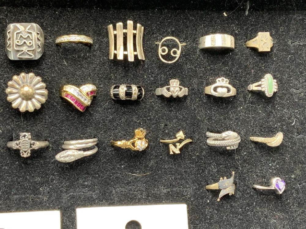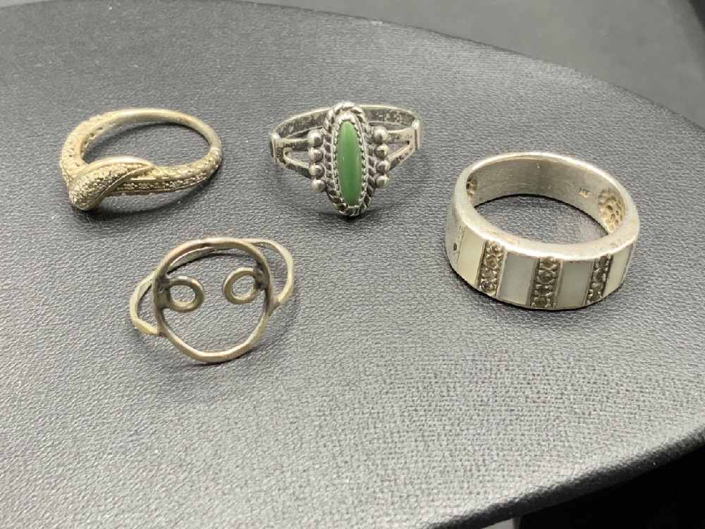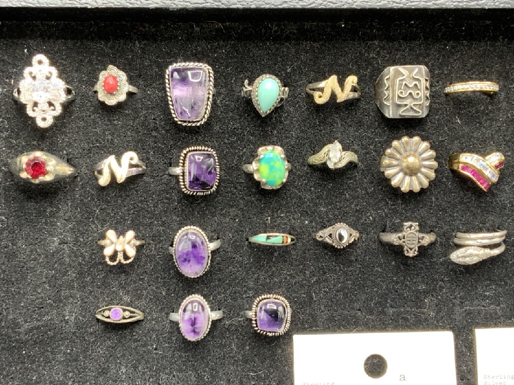Large Grouping of Sterling Silver Rings. As seen in photograph preview.