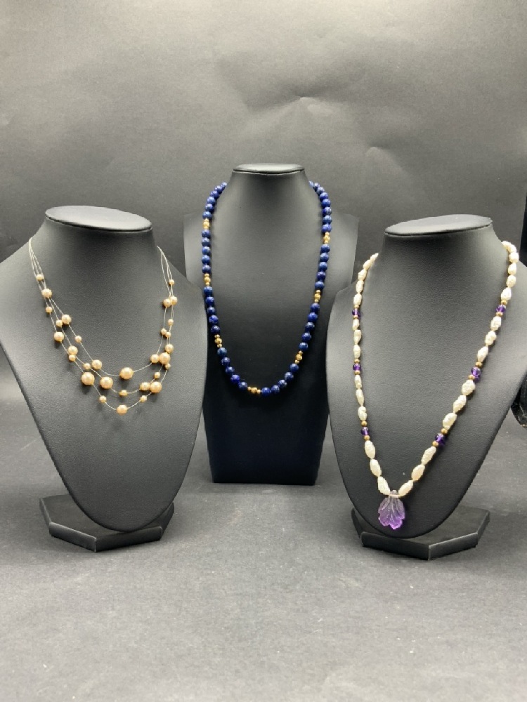 (4) 14K Gold Pearl & Bead Necklaces.