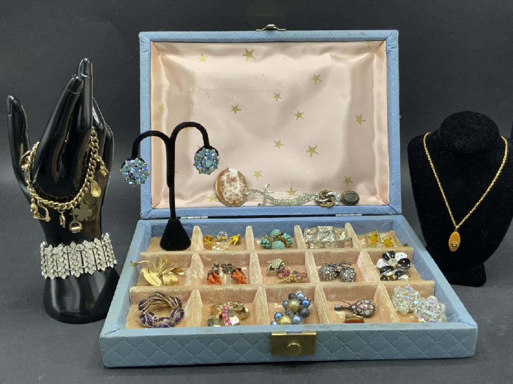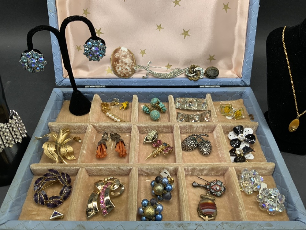 Vintage Costume Jewelry w/ Box - Weiss, Opa, Coro, Etc. As seen in photograph preview.
