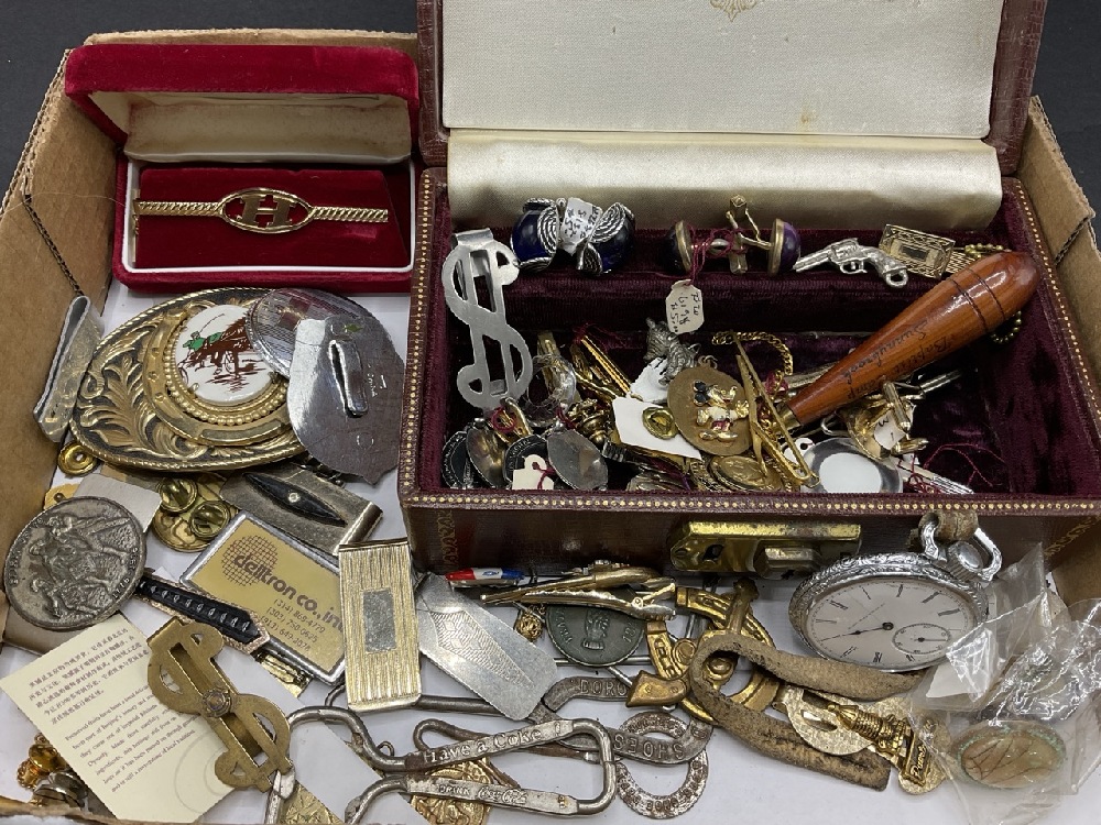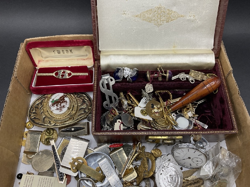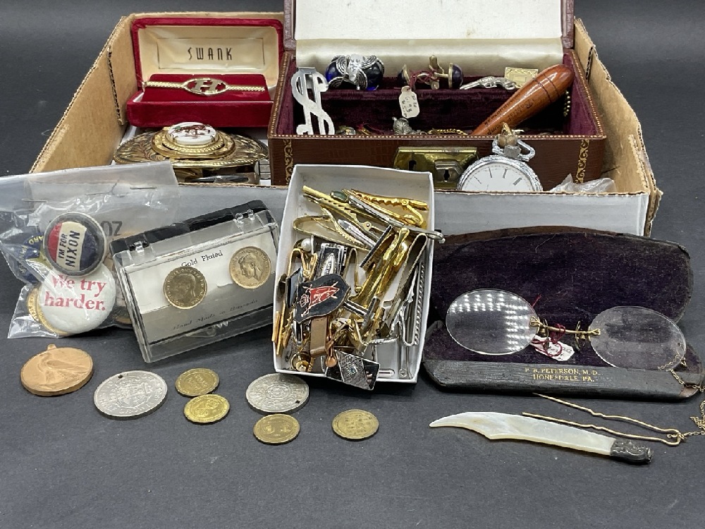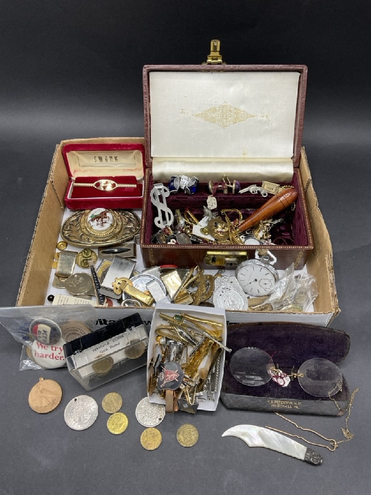 Men’s Curious Lot - Tie clips, Belt Buckles, 1920s Spectacles.
