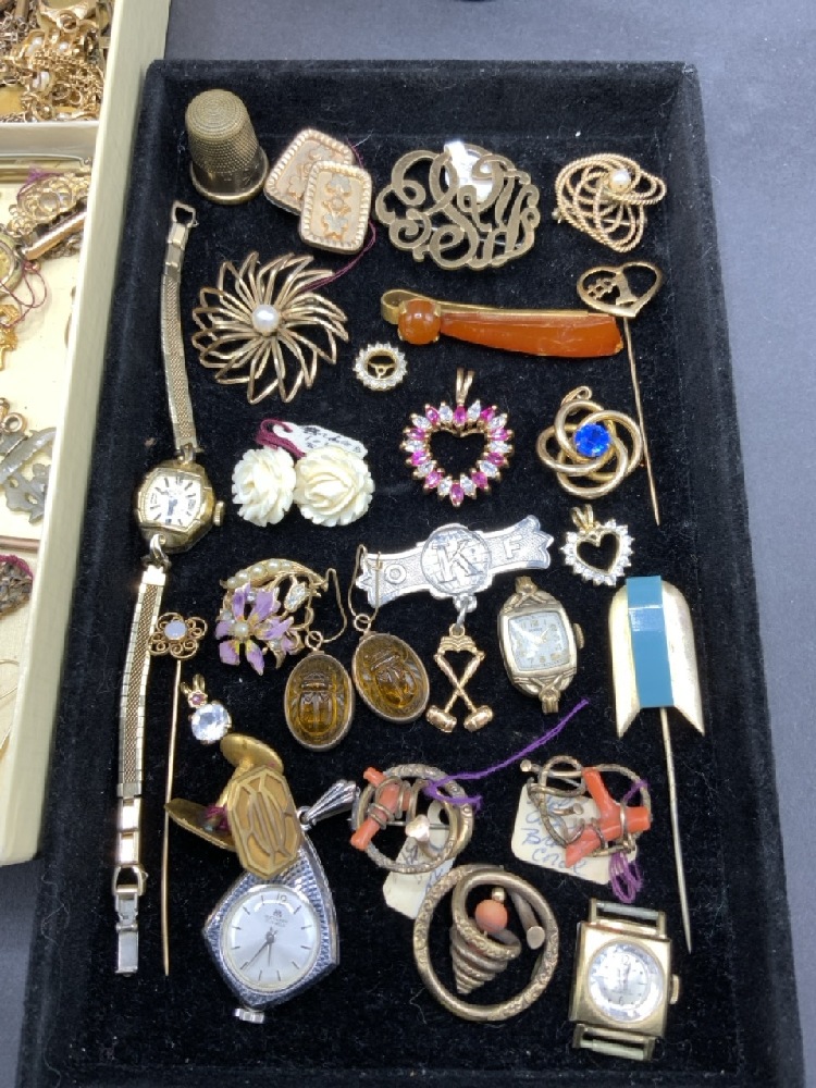 Mixed Vintage Costume Jewelry Lot. Includes Gold and Silver Tone Jewelry. As seen in photograph preview. Some damaged.