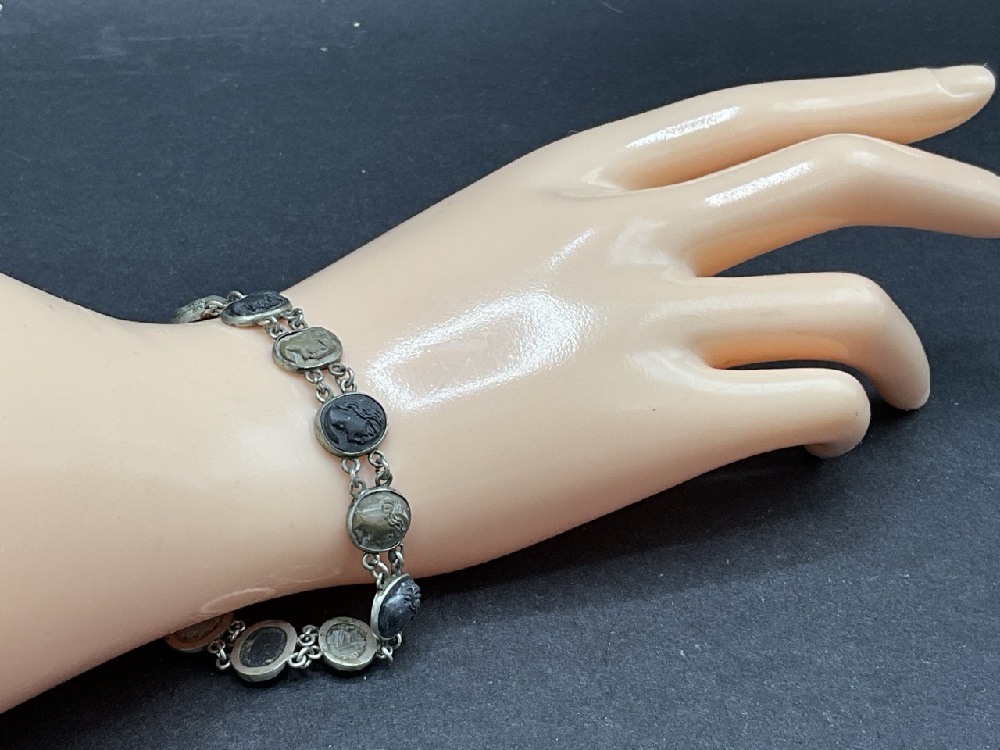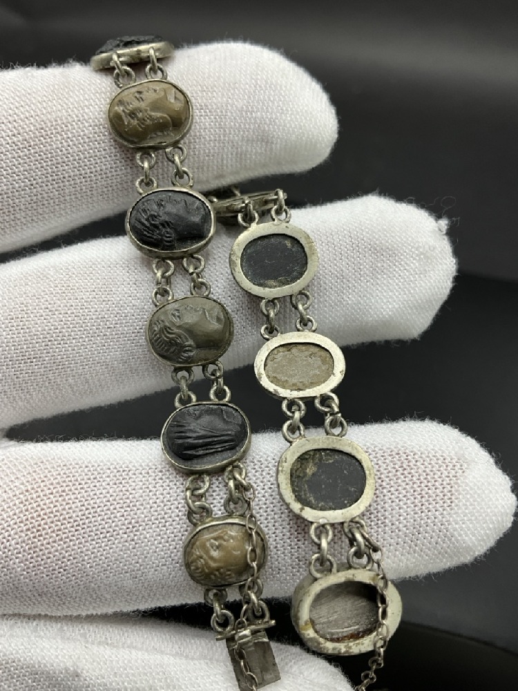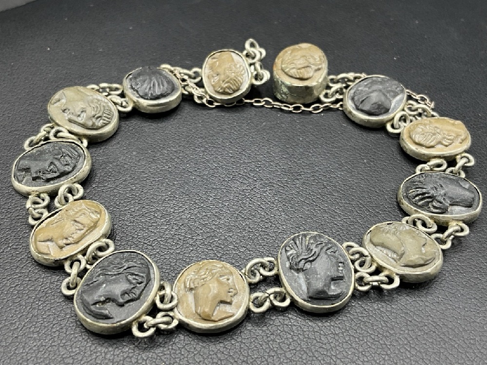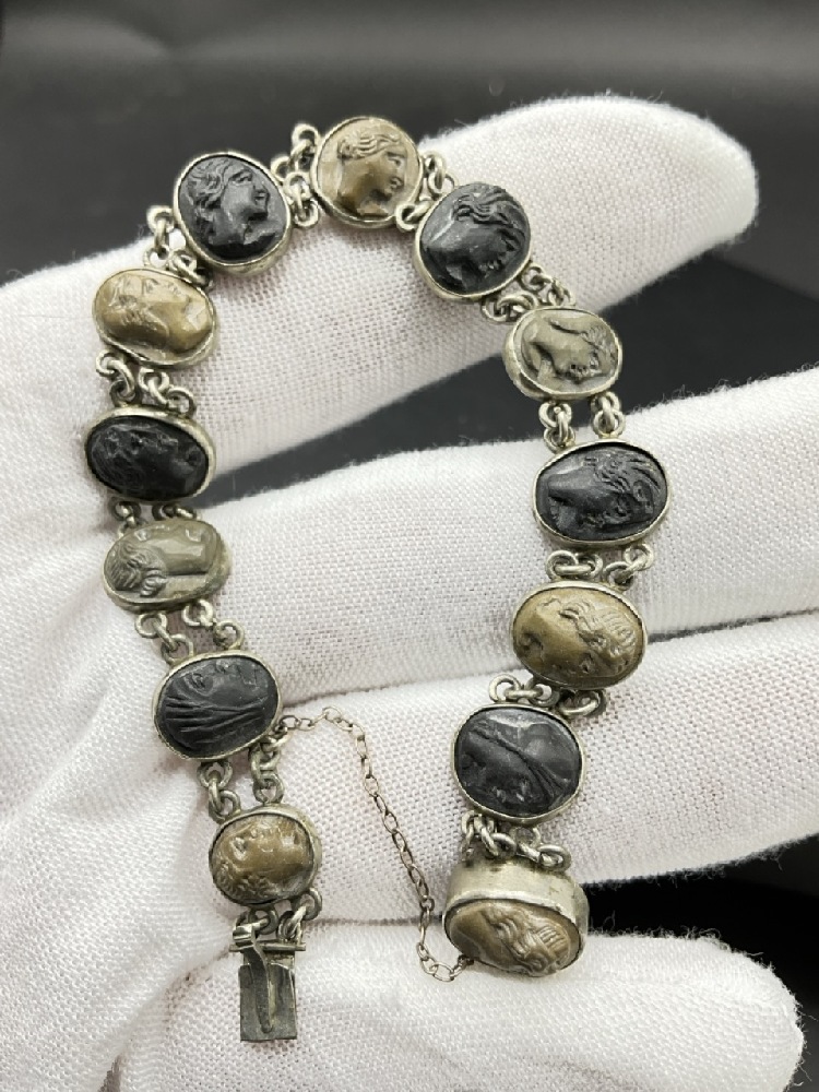 Antique Sterling Silver Lava Cameo Bracelet.