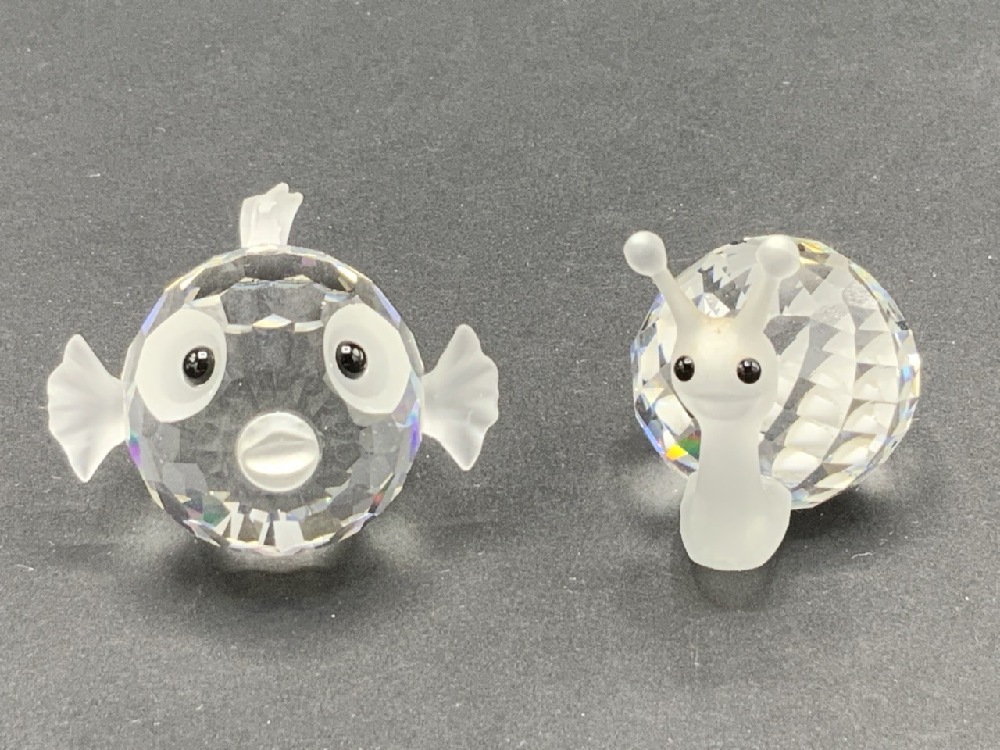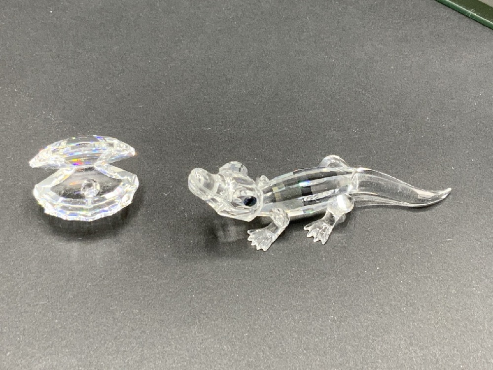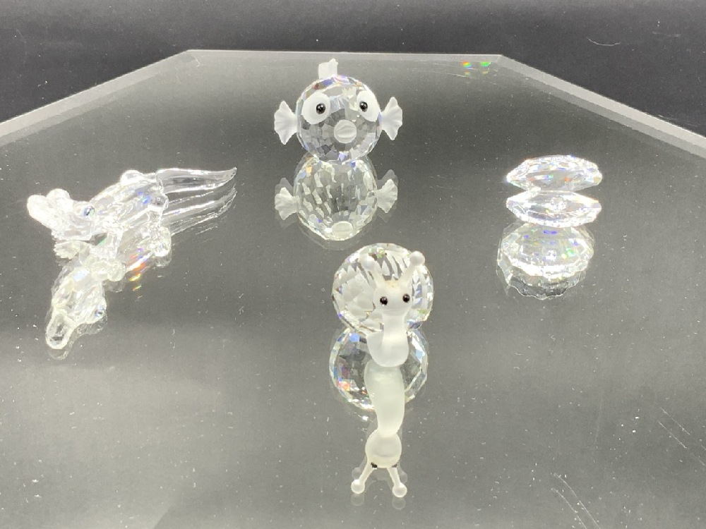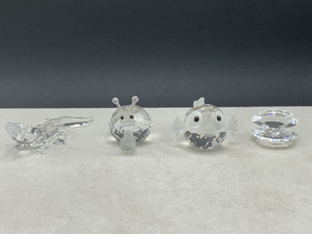 Swarovski Crystal Animal Figures with Alligator, Blow Fish ( South Sea), Snail 012725, and Clam Shell.