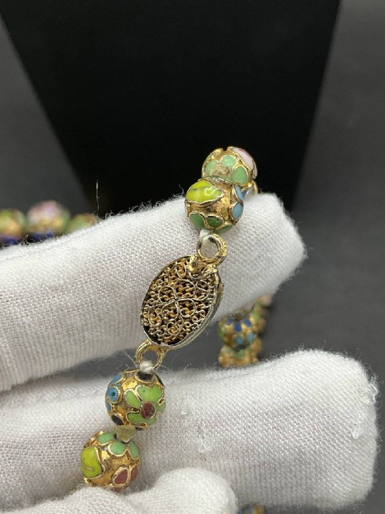 Vintage Chinese Cloisonné Long Strand Necklace.