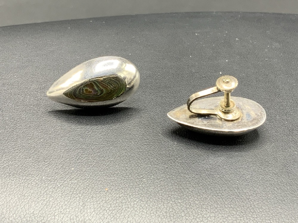 Abalone Shell Tear Drop Clip Earrings and Bracelet.