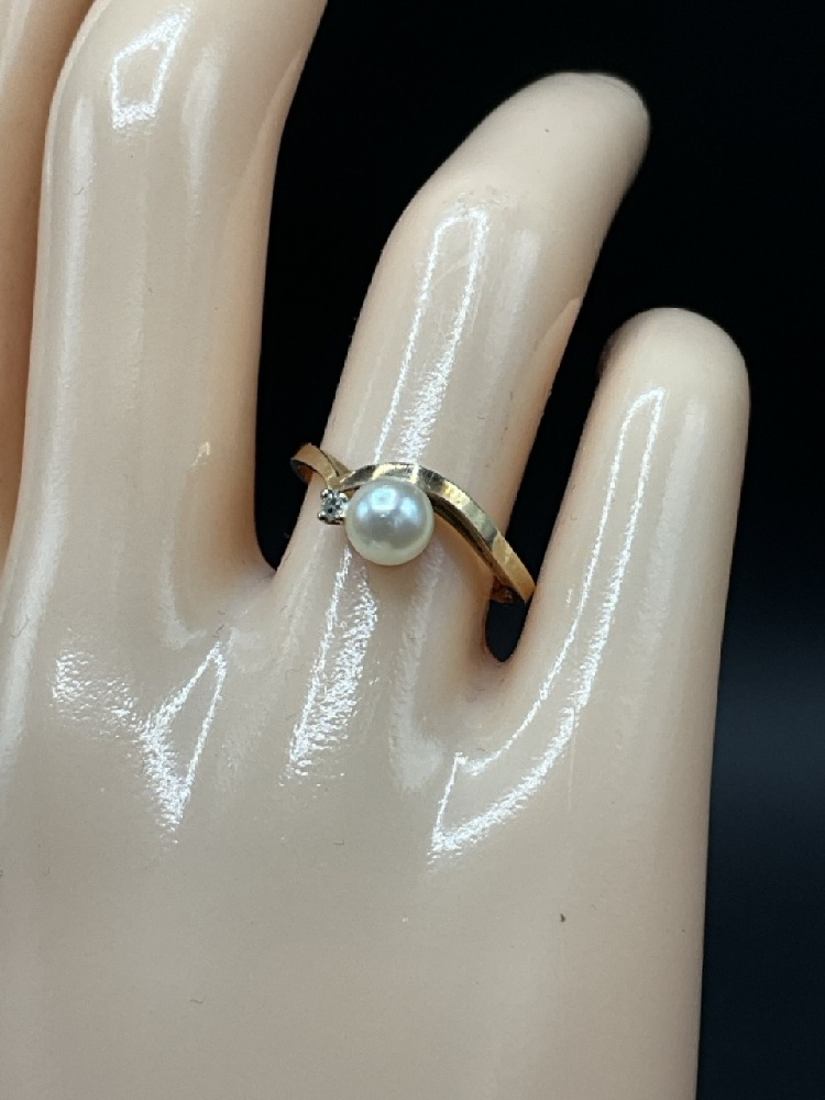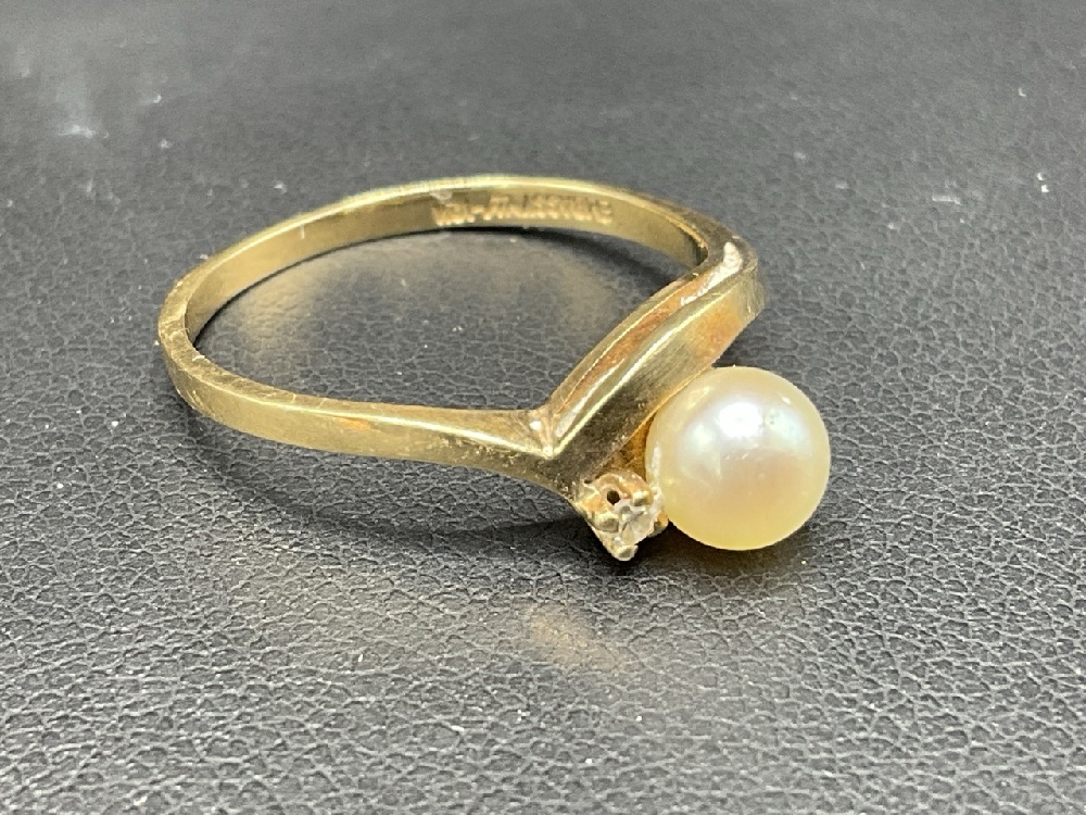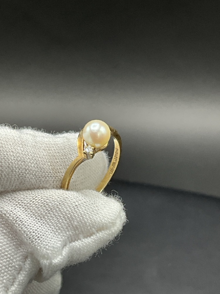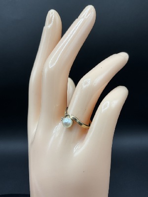 14K Yellow Gold Pearl Solitaire Ring.