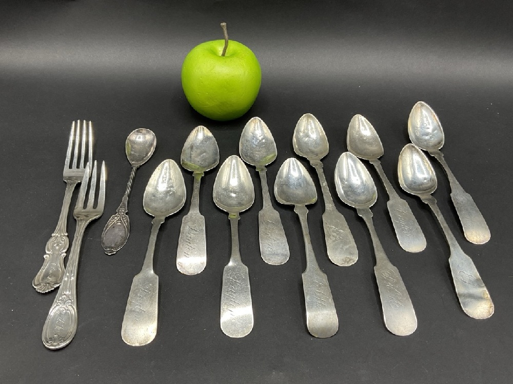 13 pcs Coin Silver Forks and Spoons