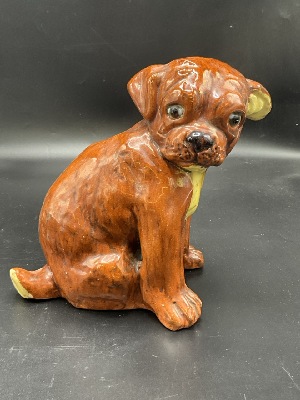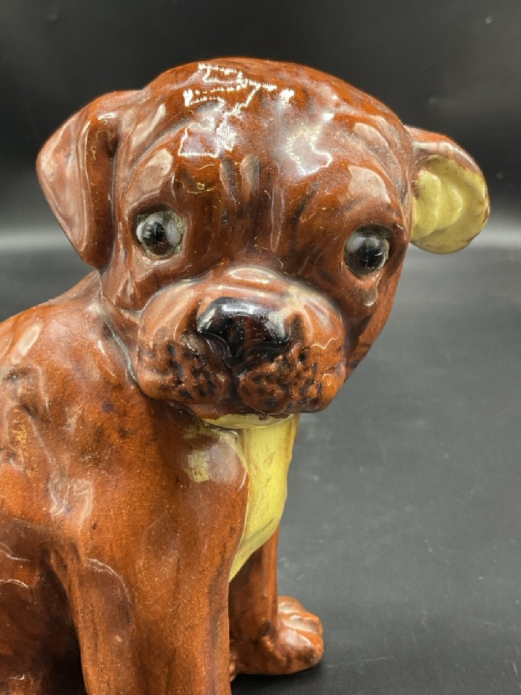 French Terracotta Boxer Dog Statue