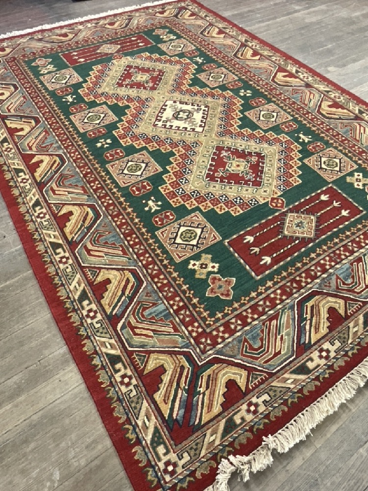 Indian Handwoven 100% Wool Rug - Sumak Design.