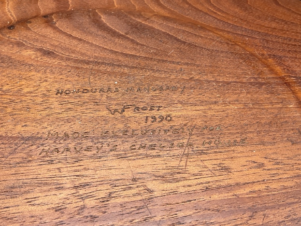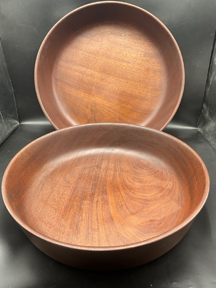 Two (2) Honduras Mahogany Large Bowls, Made for Harvey's Chelsea House Restaurant NYC. Signed W. Frost c.1990.