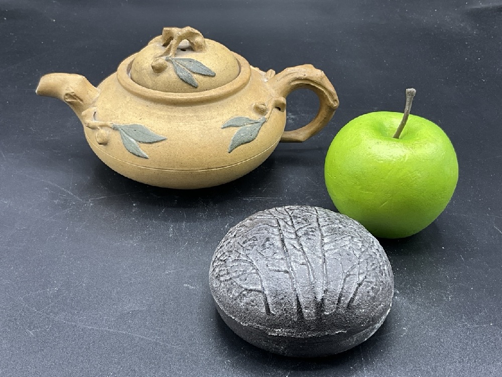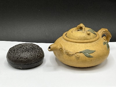 Yixing Tea Pot with Bronze Tree Jar. 19th Century.