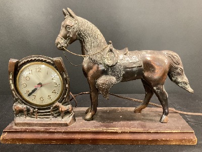 Vintage Sessions Horse & Cowboy Western Bronze/Copper Clock - Model W.