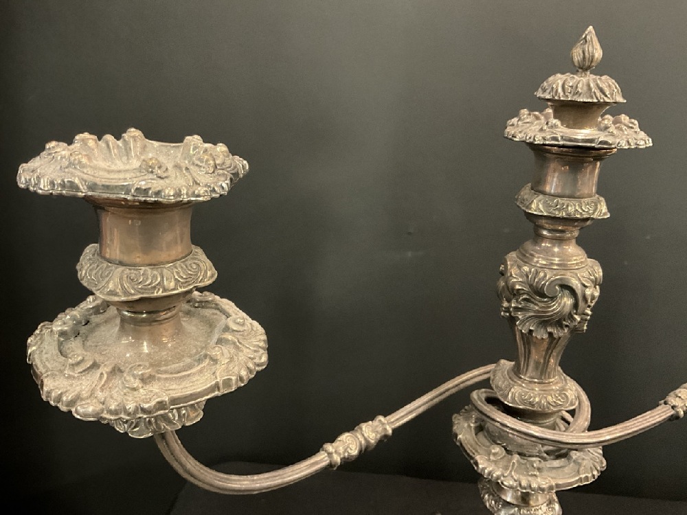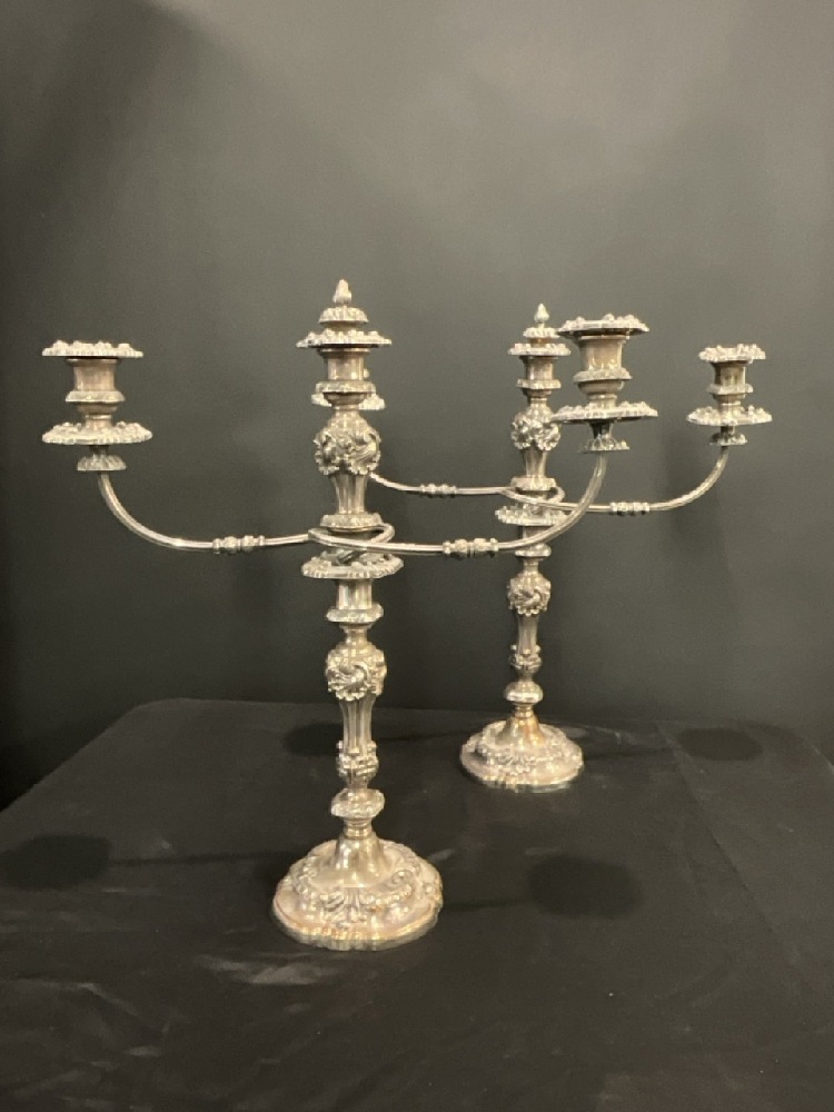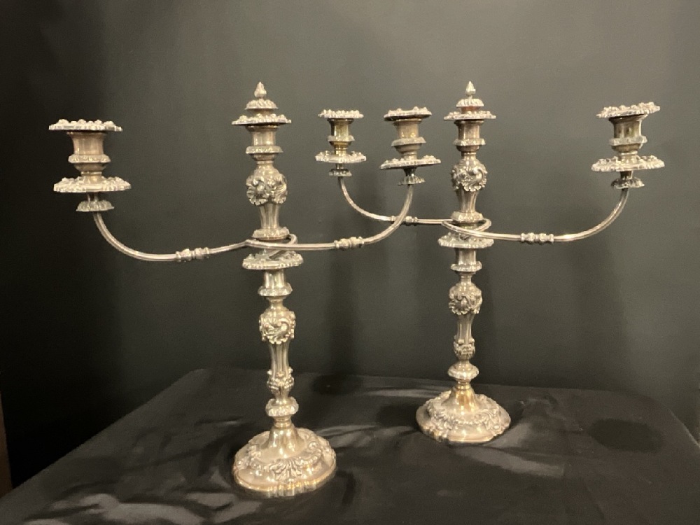 A Pair, Sheffield Silver Plated Candelabra. 19th Century English.