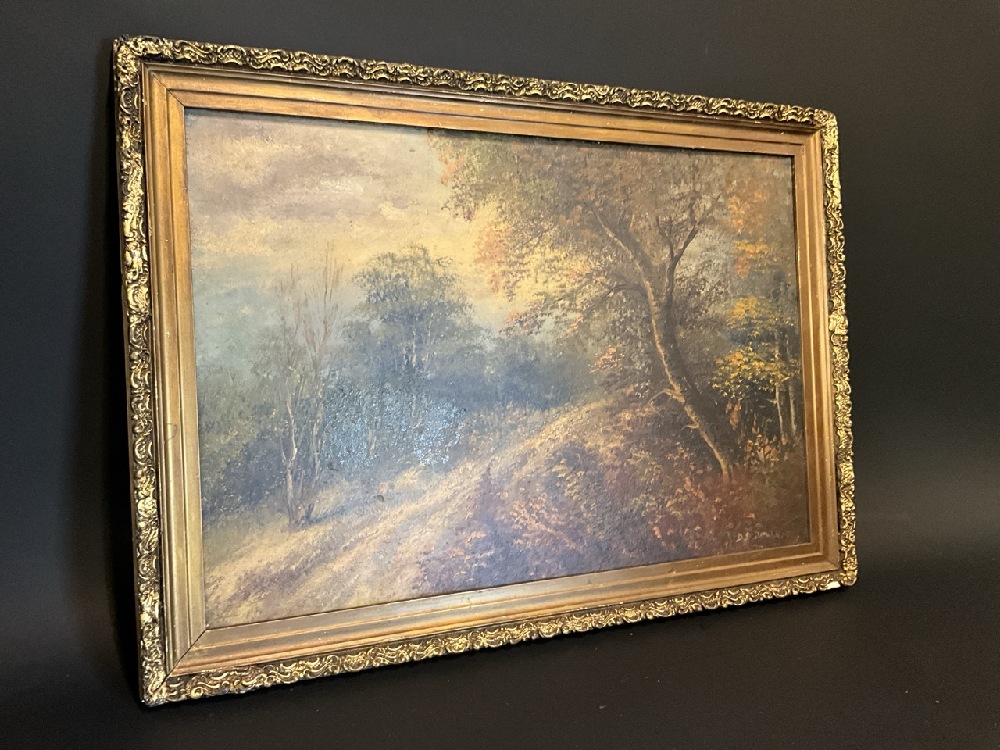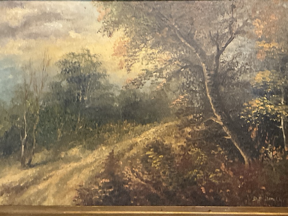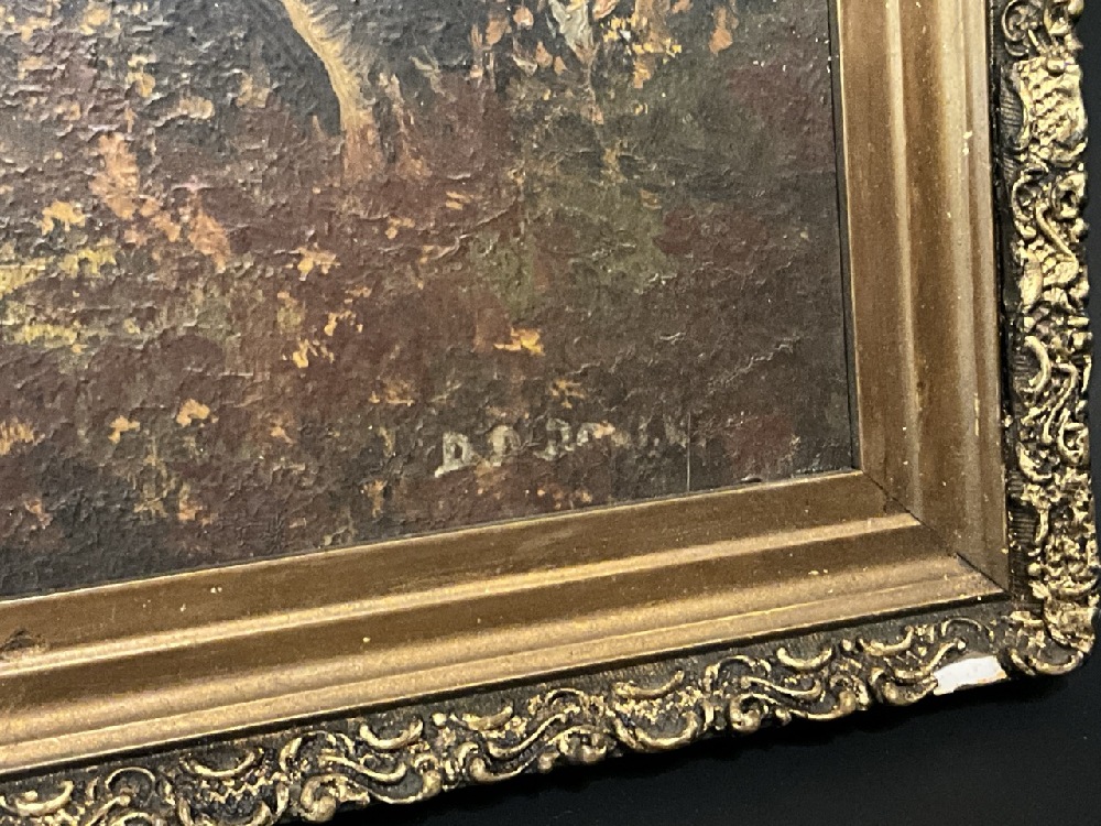 Illegibly Signed Oil on Board Landscape Painting. Signed lower right.