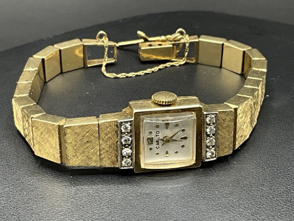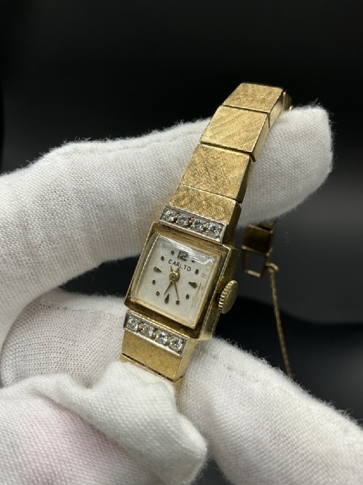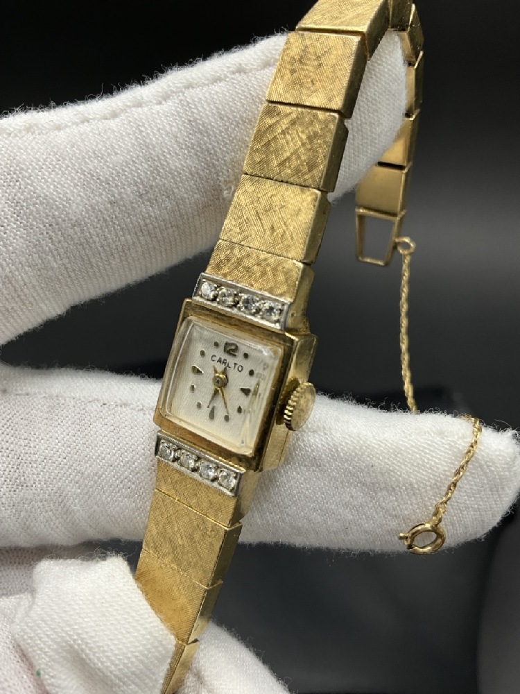 14K Yellow Gold and Diamond Carlto Lady’s Wristwatch. Face and band is all gold.