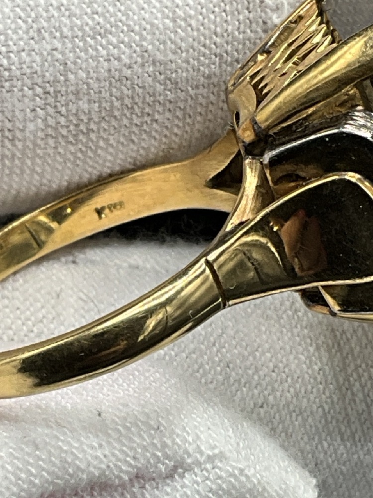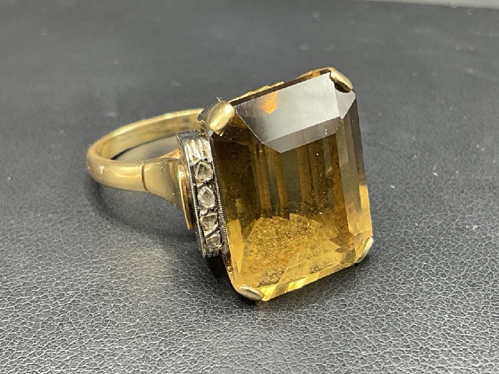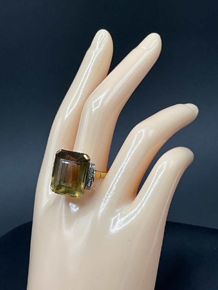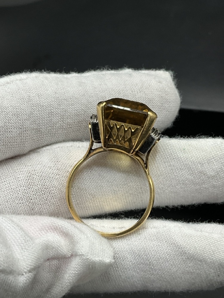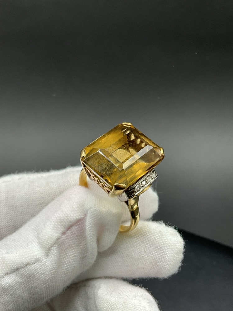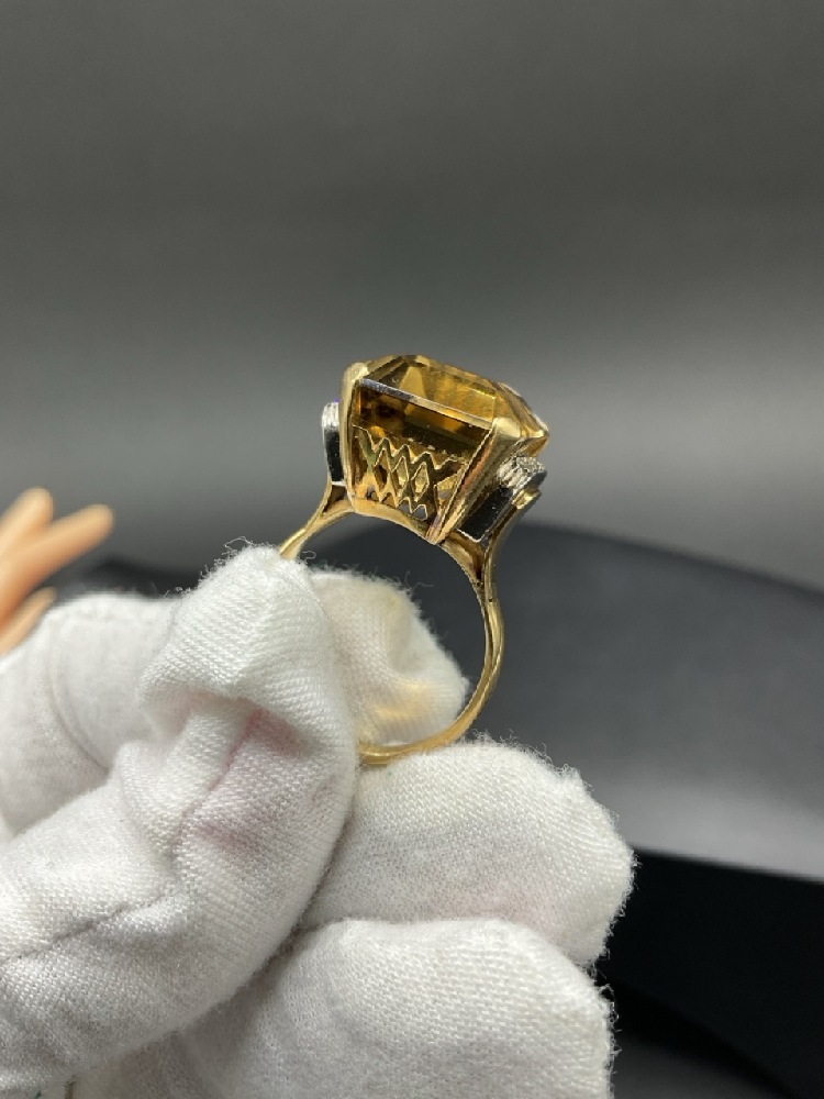 18K Yellow Gold Citrine and Diamond Ring.