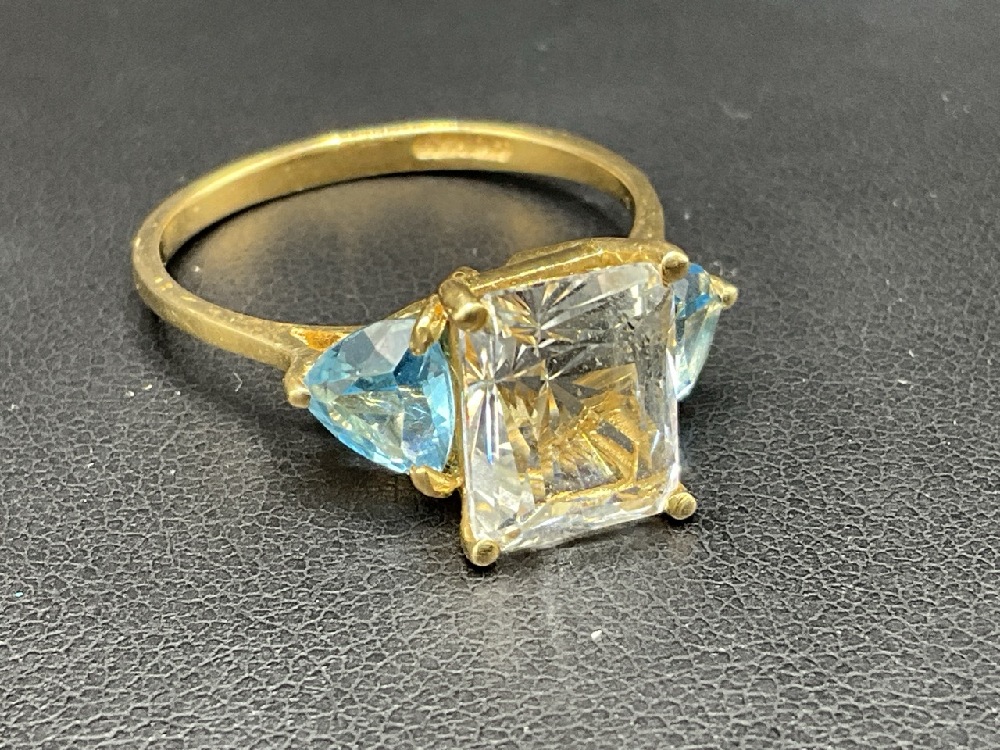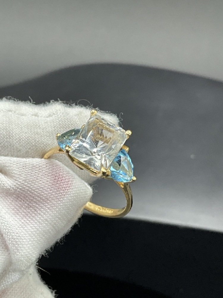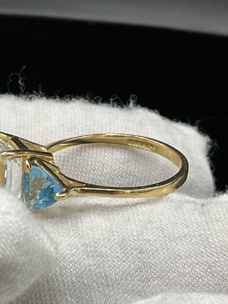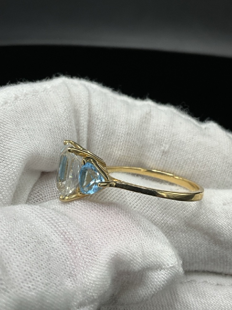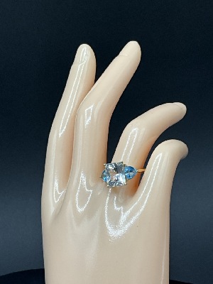 14K Yellow Gold Aquamarine and Blue Topaz Cocktail Ring.