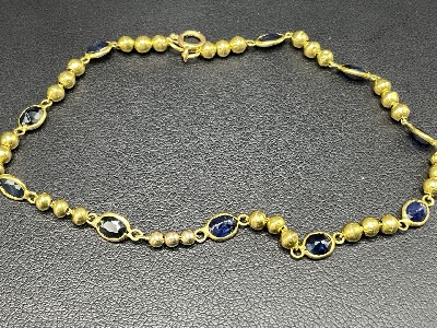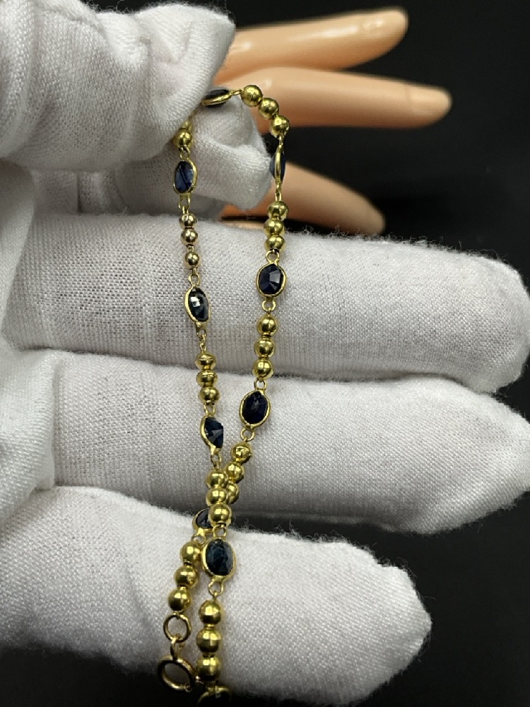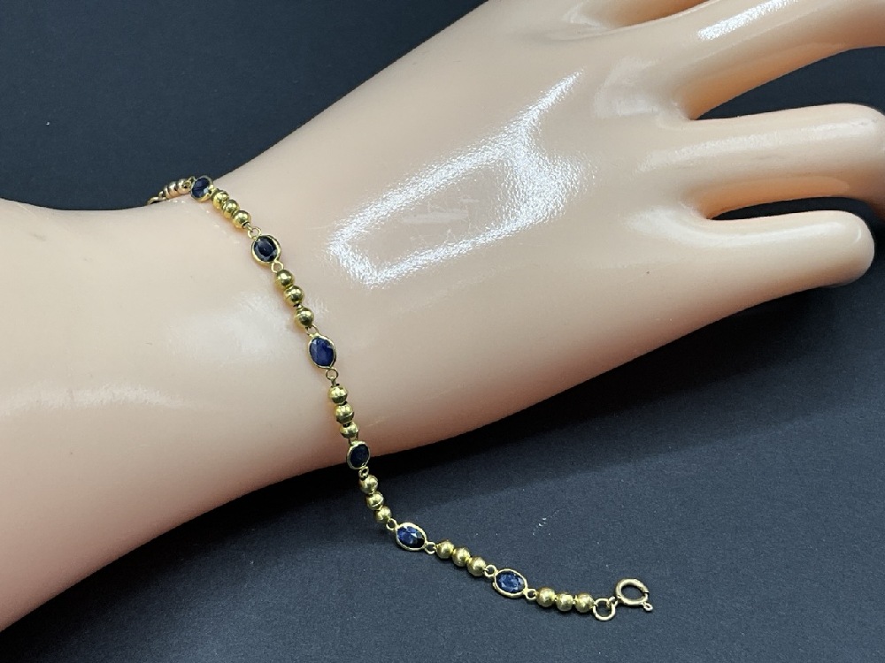 18K Yellow Gold Blue Sapphire Bracelet. Stamped 750.