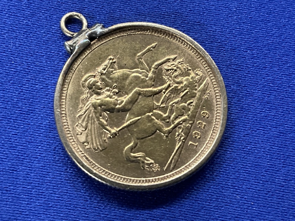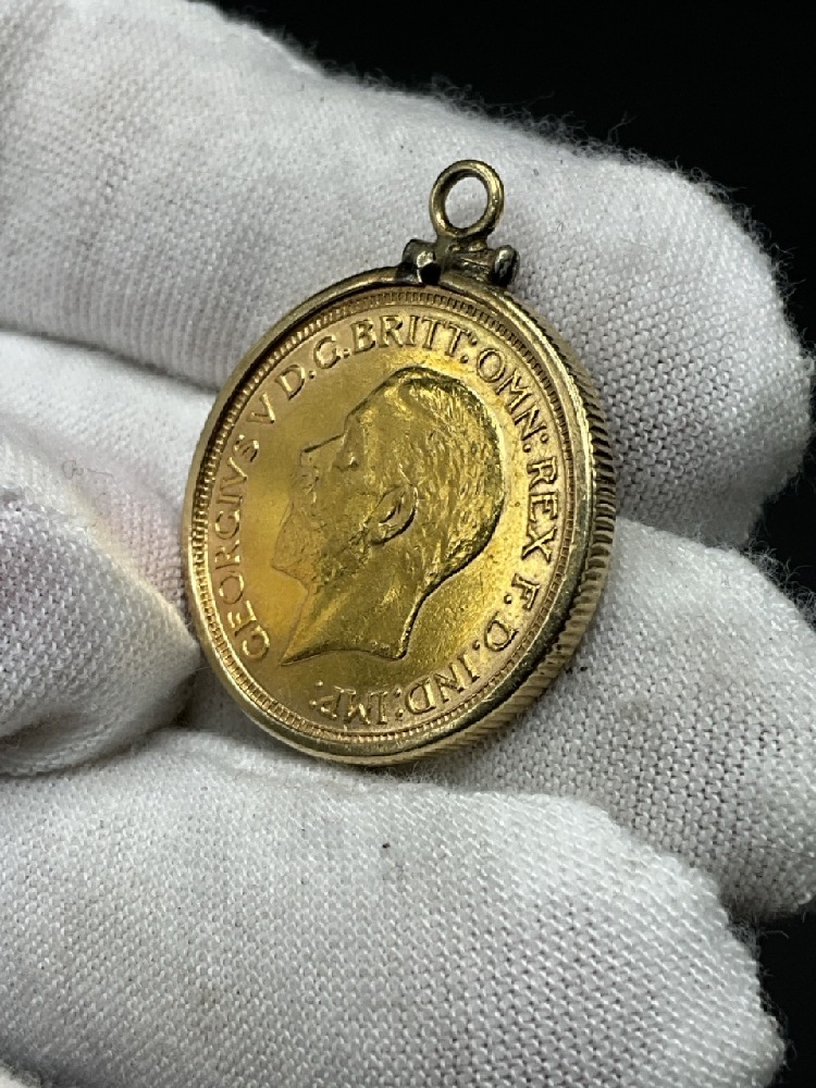 1929 British Sovereign with 10K yellow Gold Bezel.