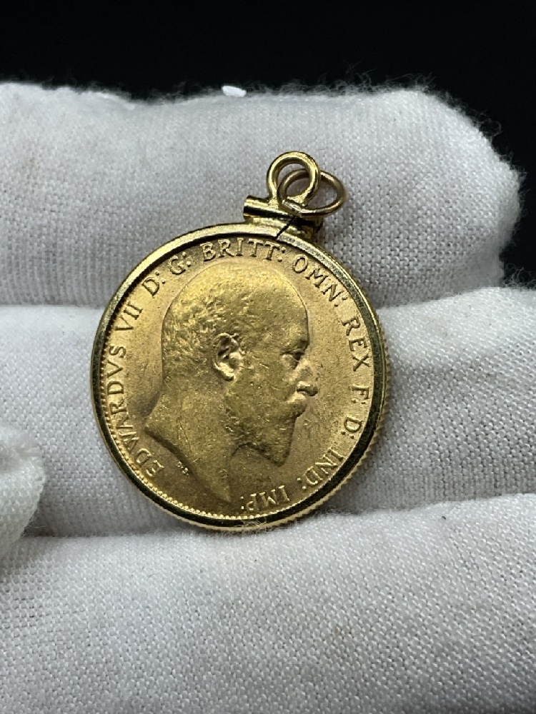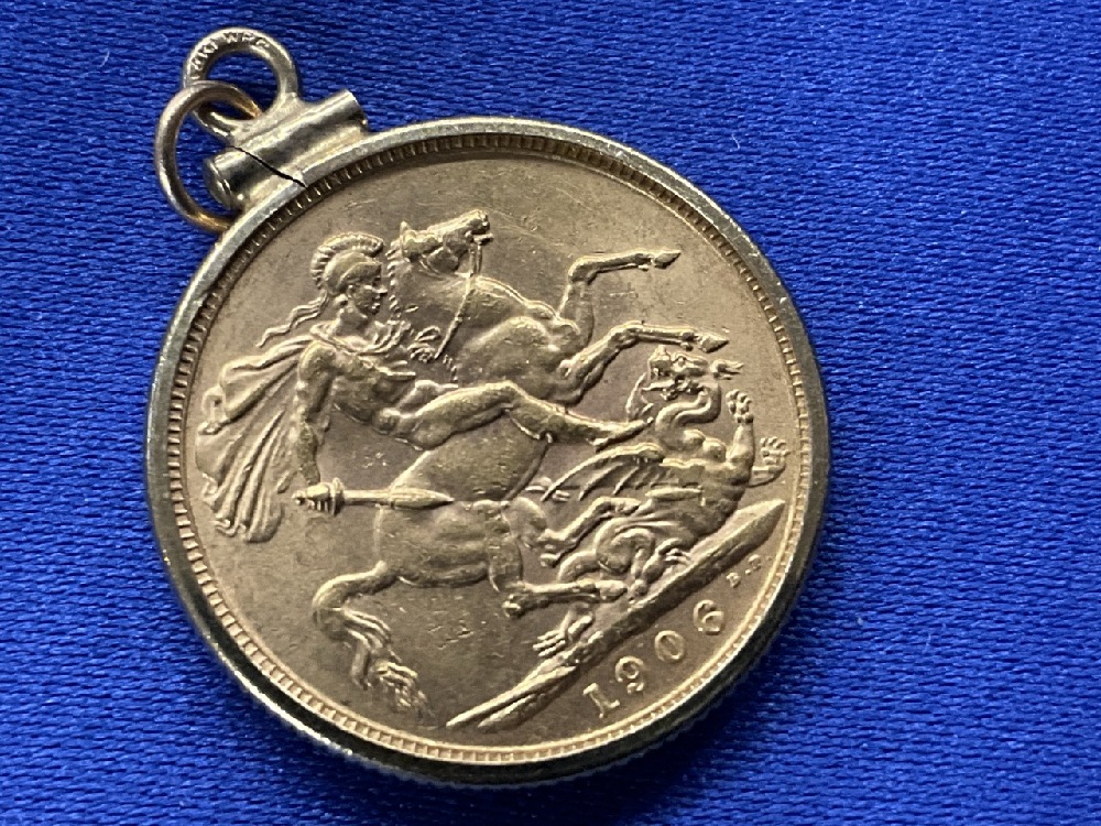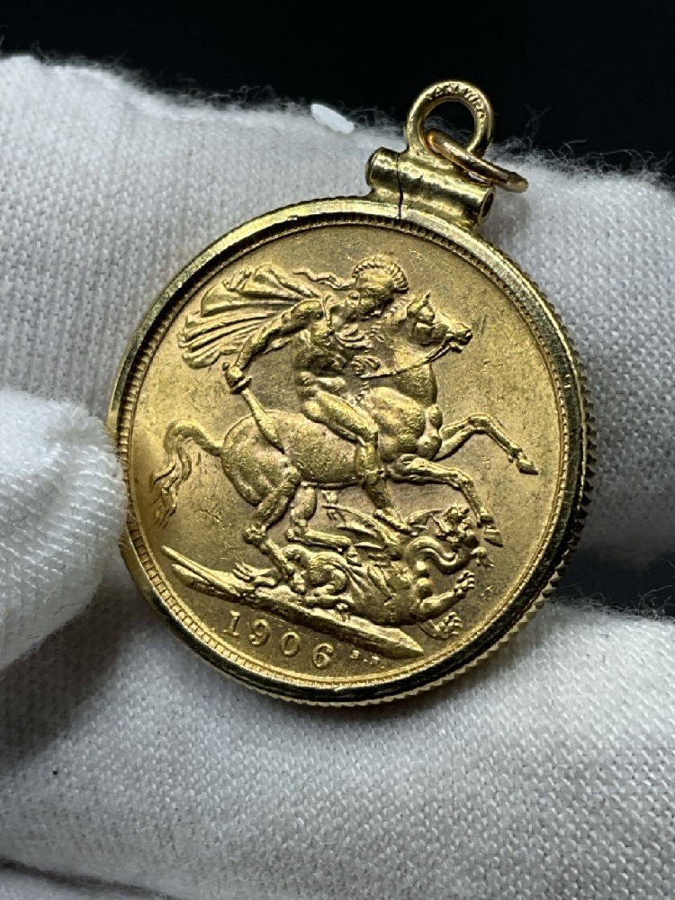 1906 British Sovereign with 14K Yellow Gold Bezel.