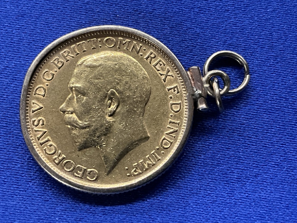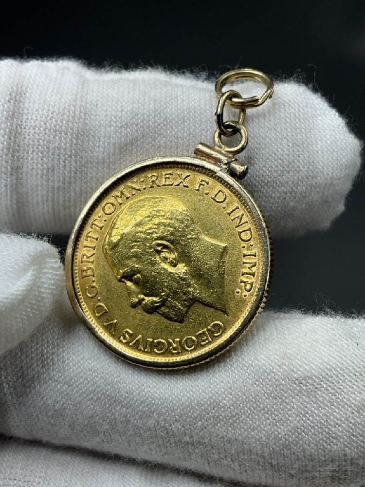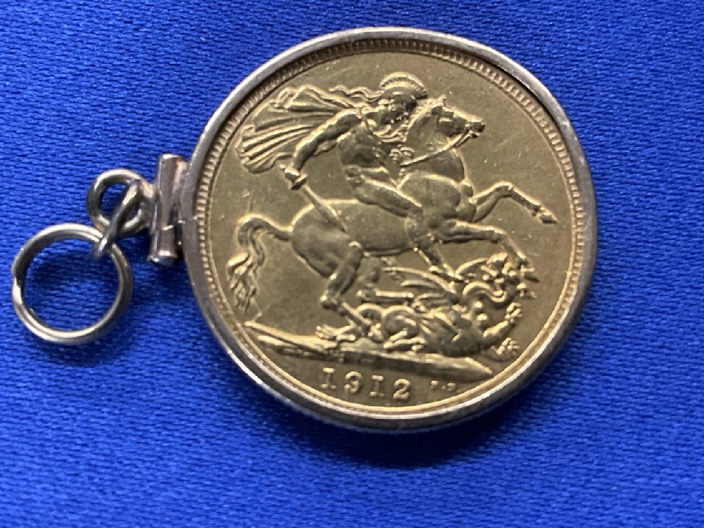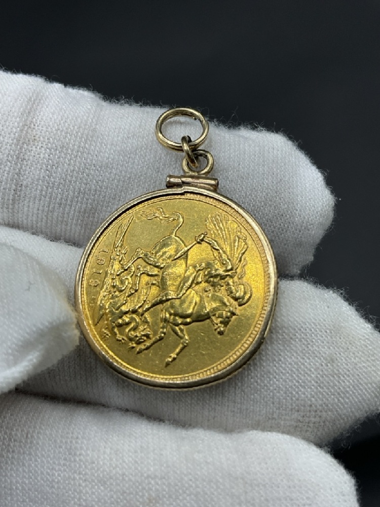 1912 British Sovereign with 14K Yellow Gold Bezel.