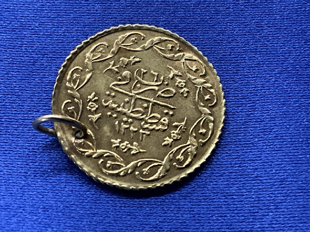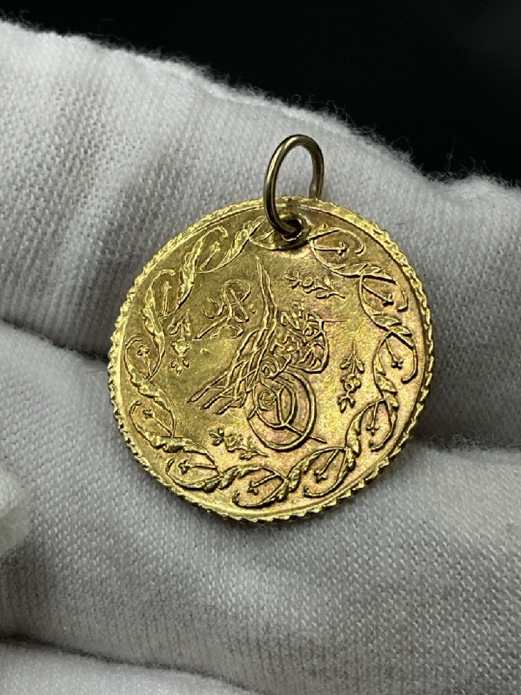 Turkish Ottoman Gold Coin Jewelry Pendant. 1 Cedid.