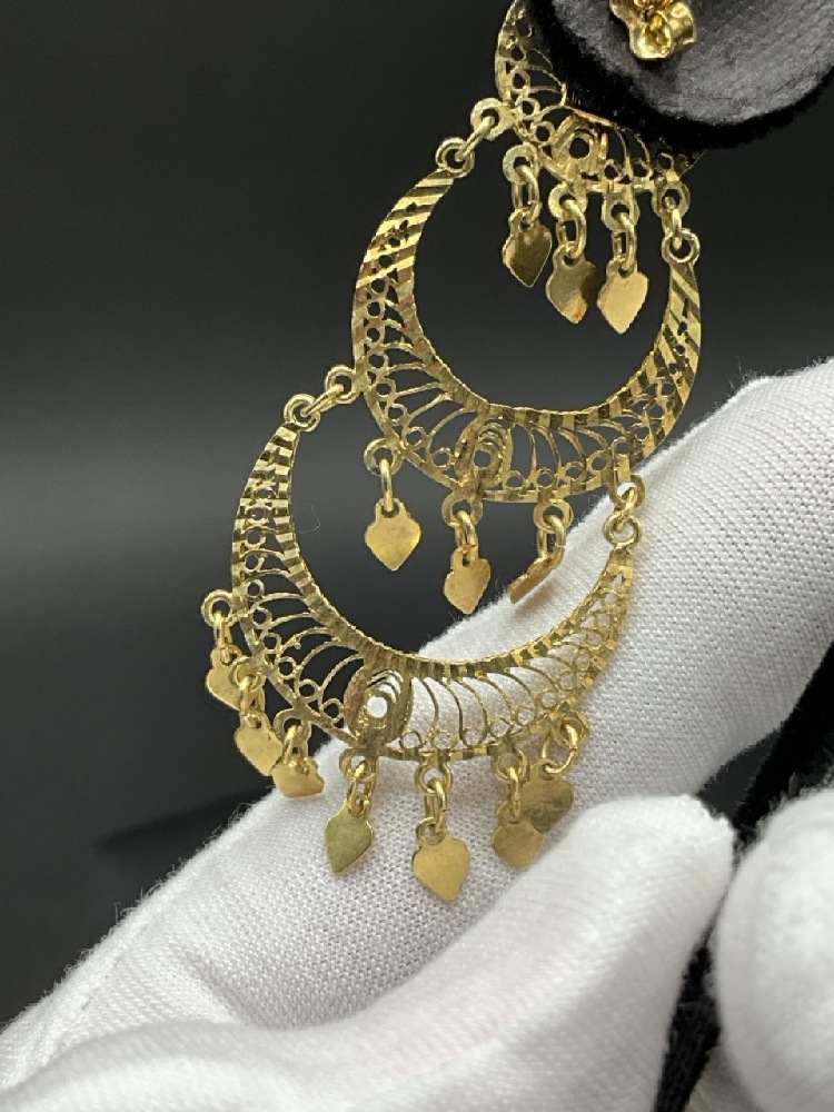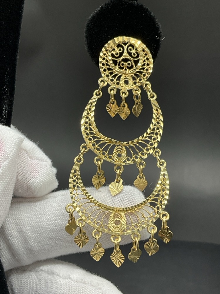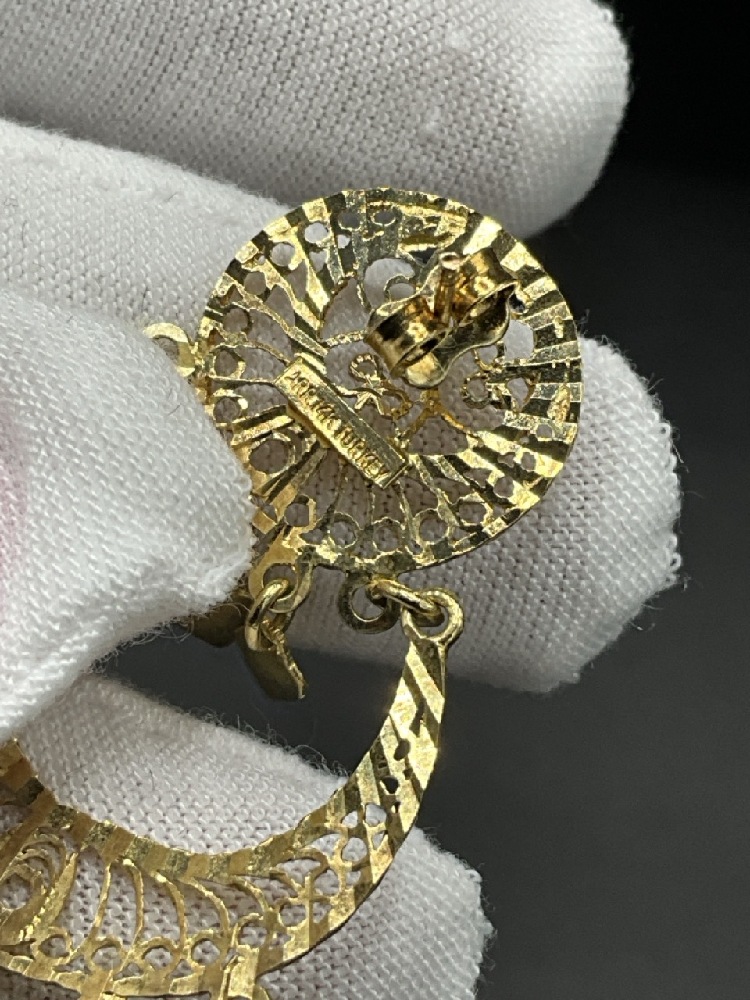 14K Yellow Gold Turkish Dangle Earrings. Marked Turkey 14K.