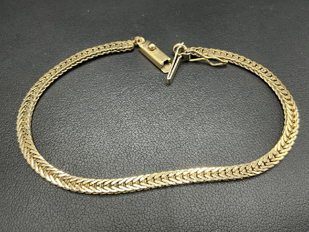 14K Solid Yellow Gold Italian Herringbone Bracelet.