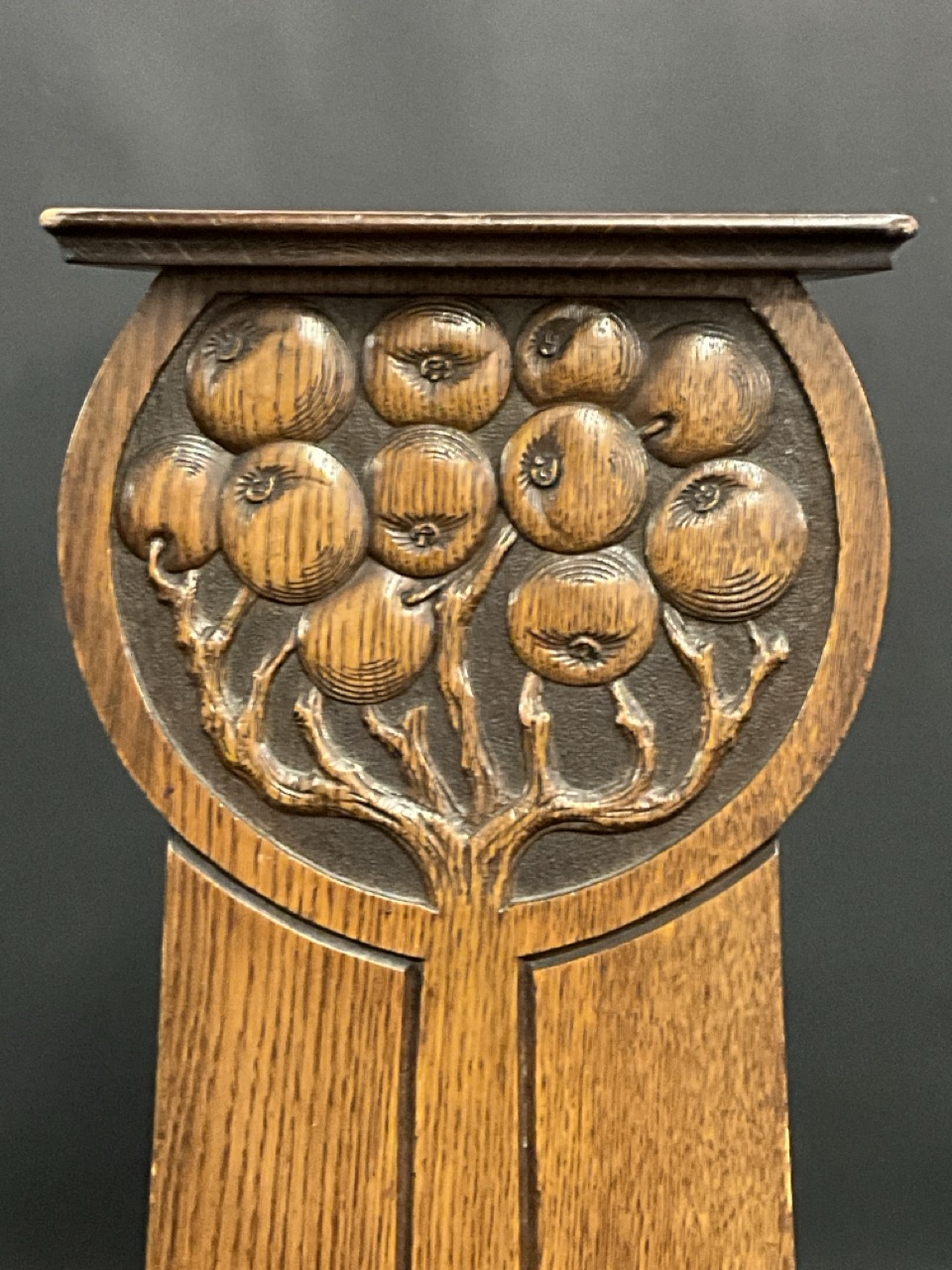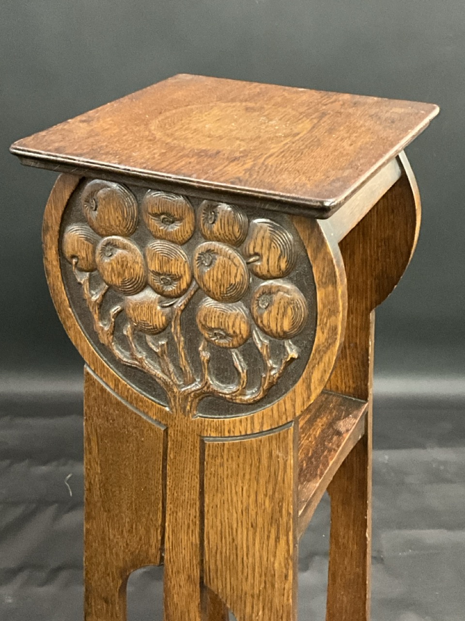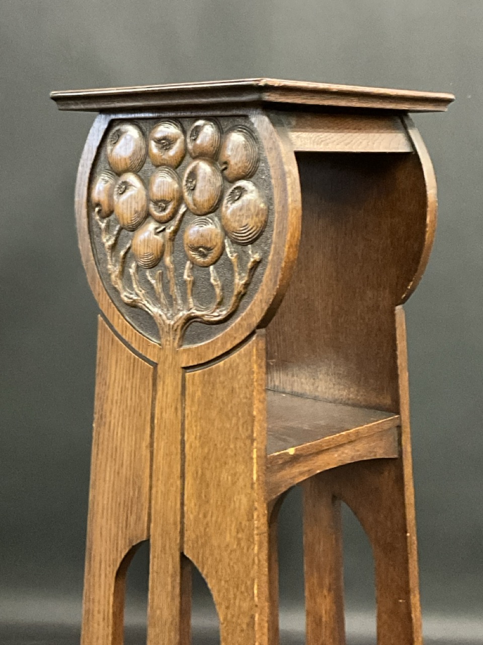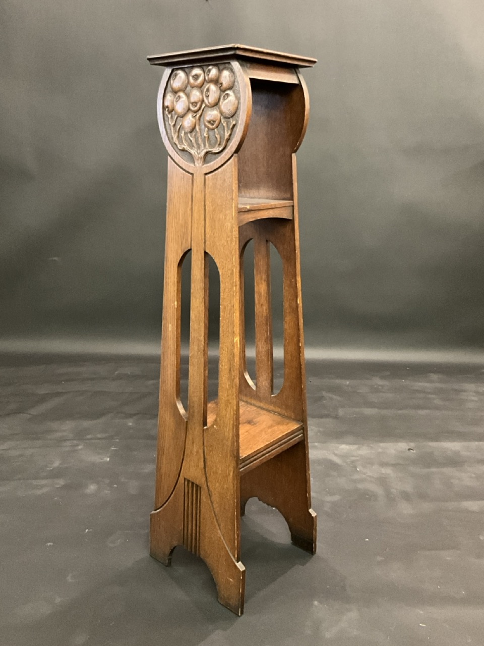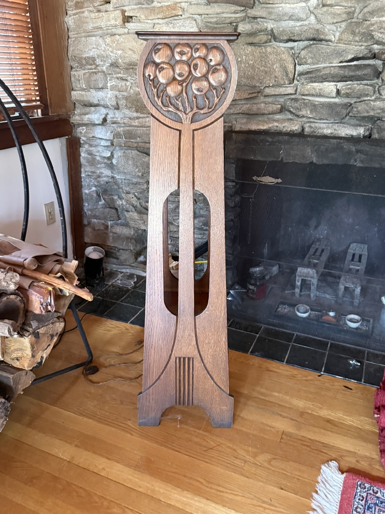 Art Nouveau Oak Fern or Plant Stand with Carved Fruits.