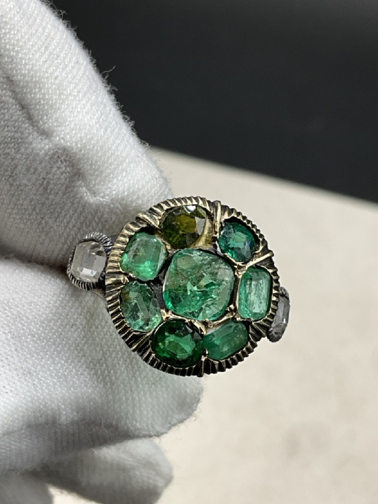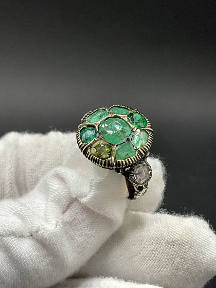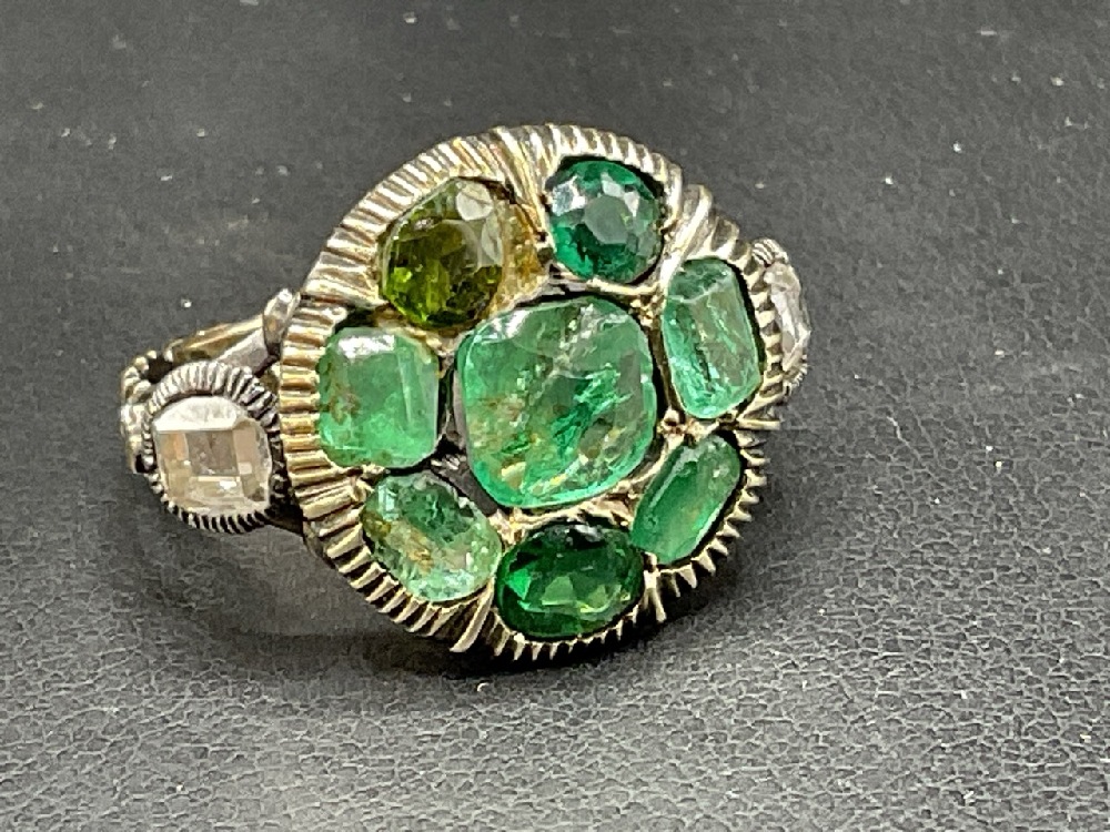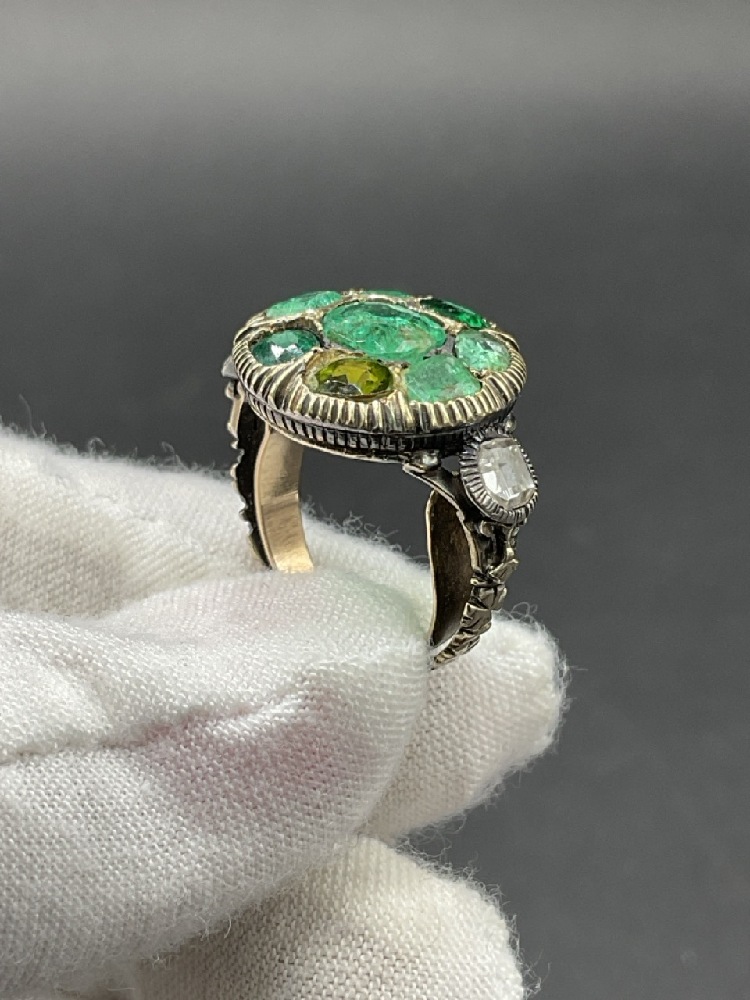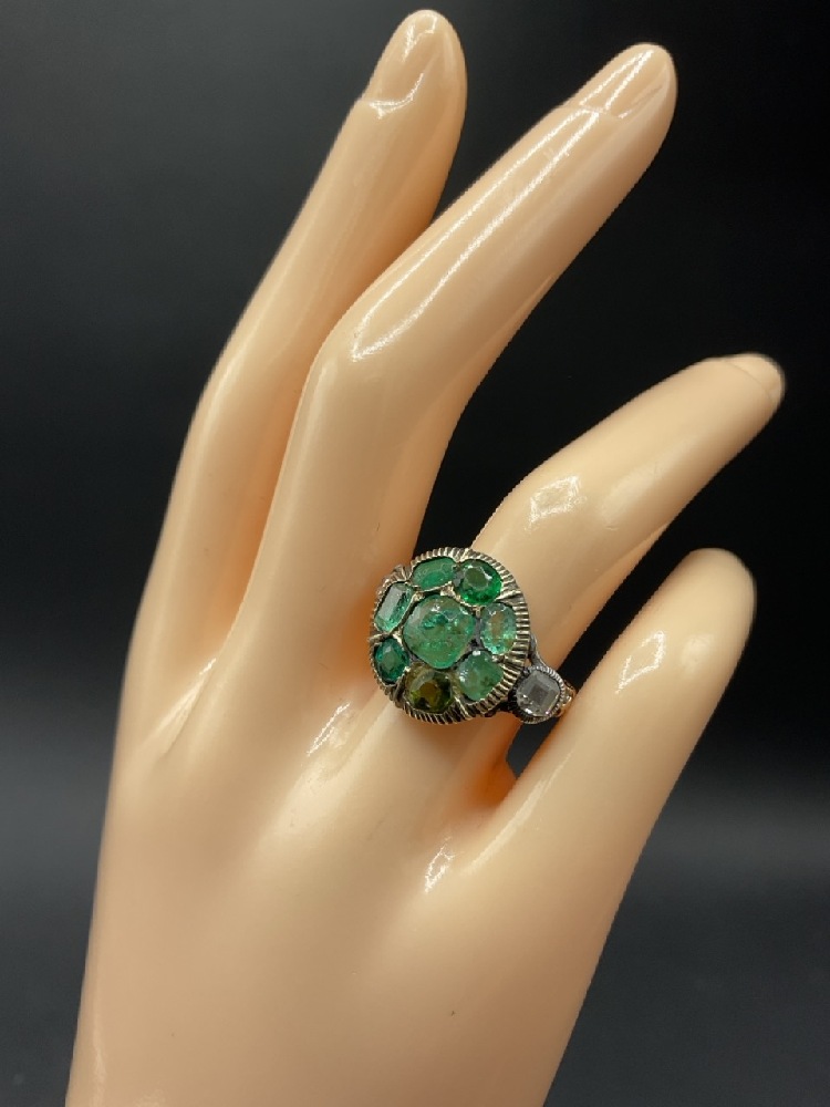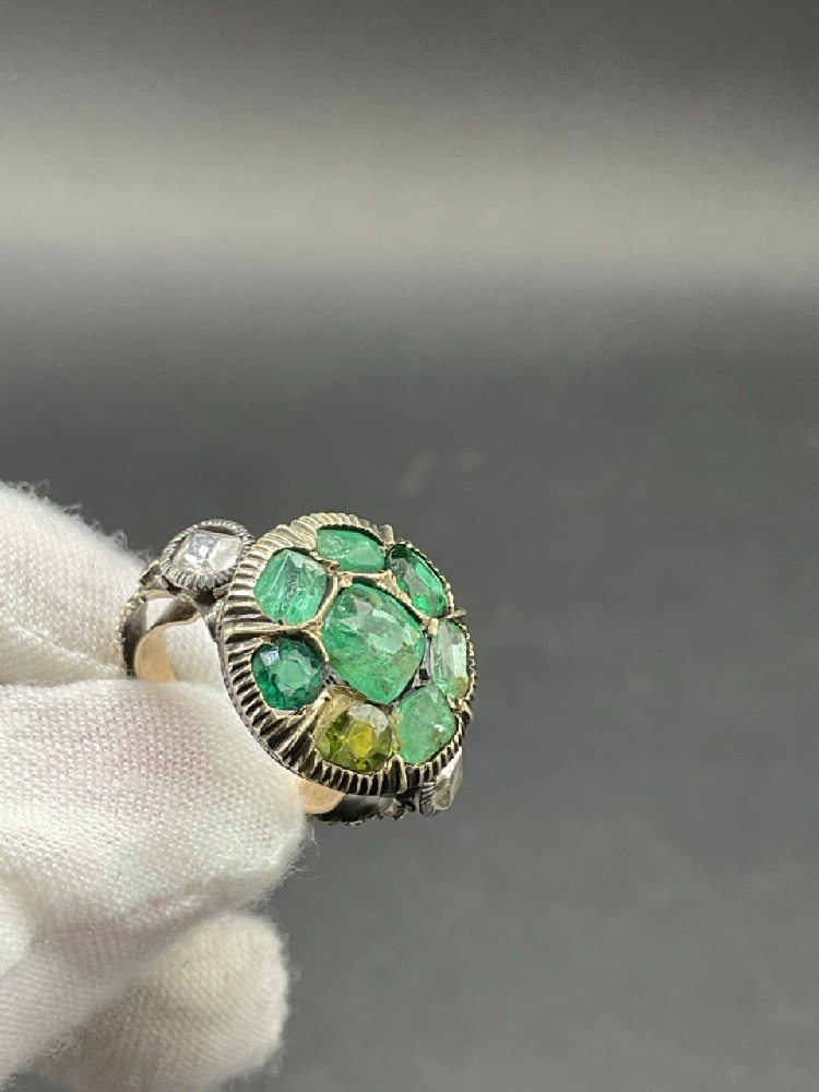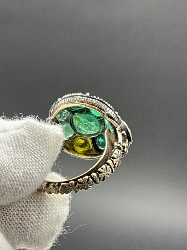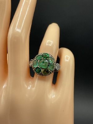 Emerald and Diamond 10K Yellow Gold. Two Stones Being Peridot and Tourmaline.
