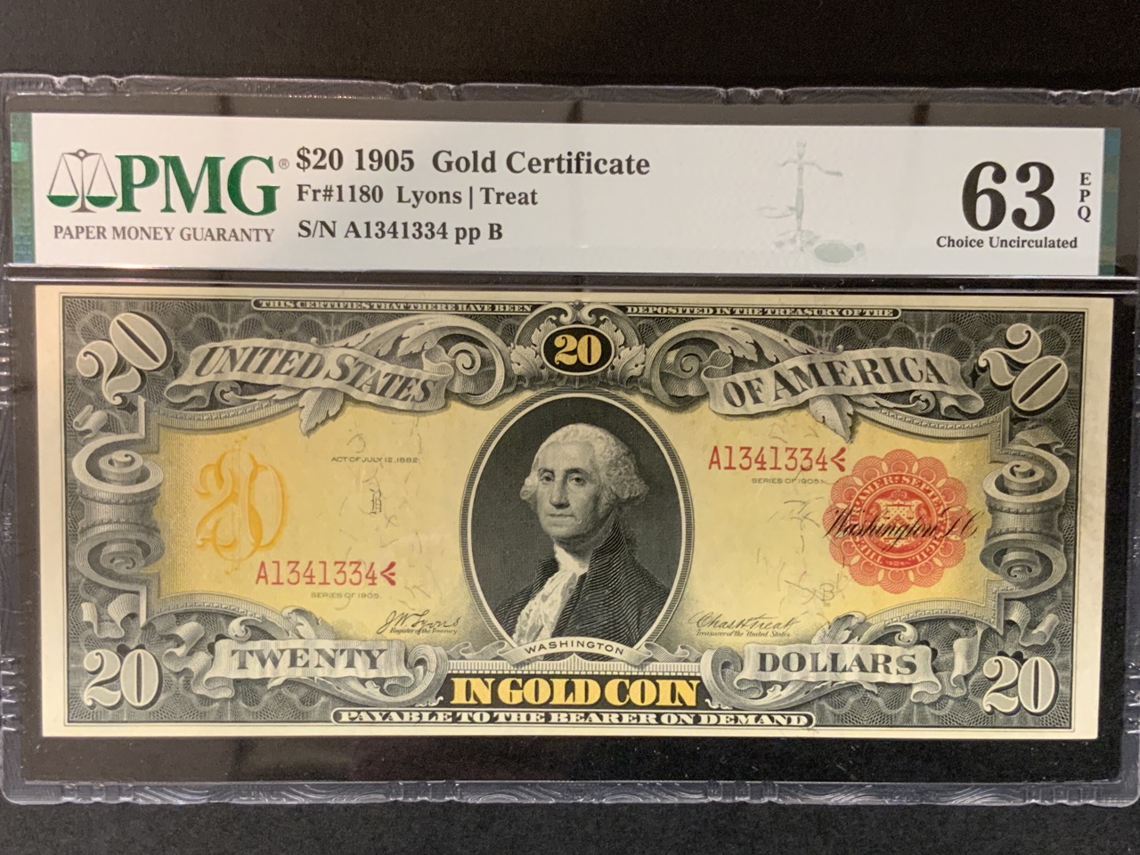 1905 $20 Gold Certificate FR#1180 63 EPQ Excellent Paper Quality