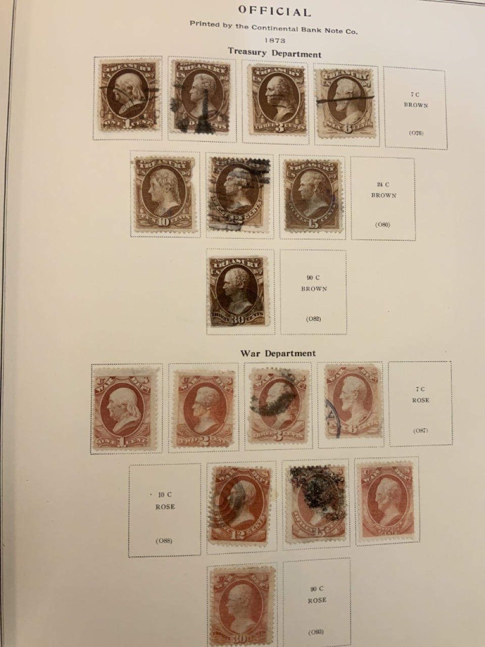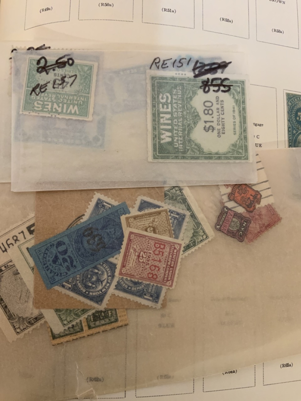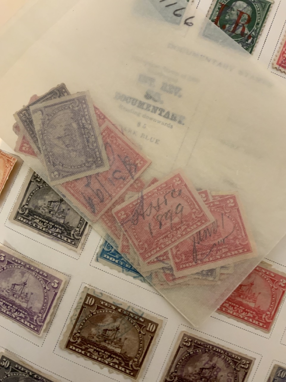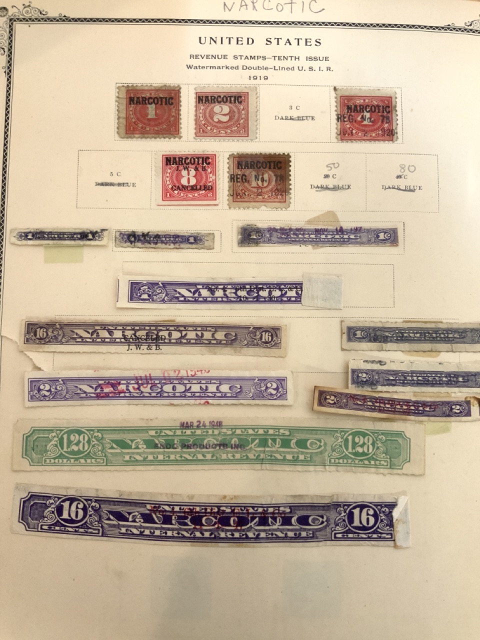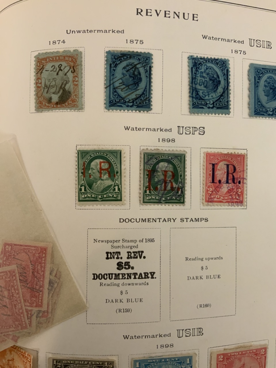 National Stamp Album with contents. A full album with revnue stamps, hand postmarked, 19th century. Mortgage, Tax etc.