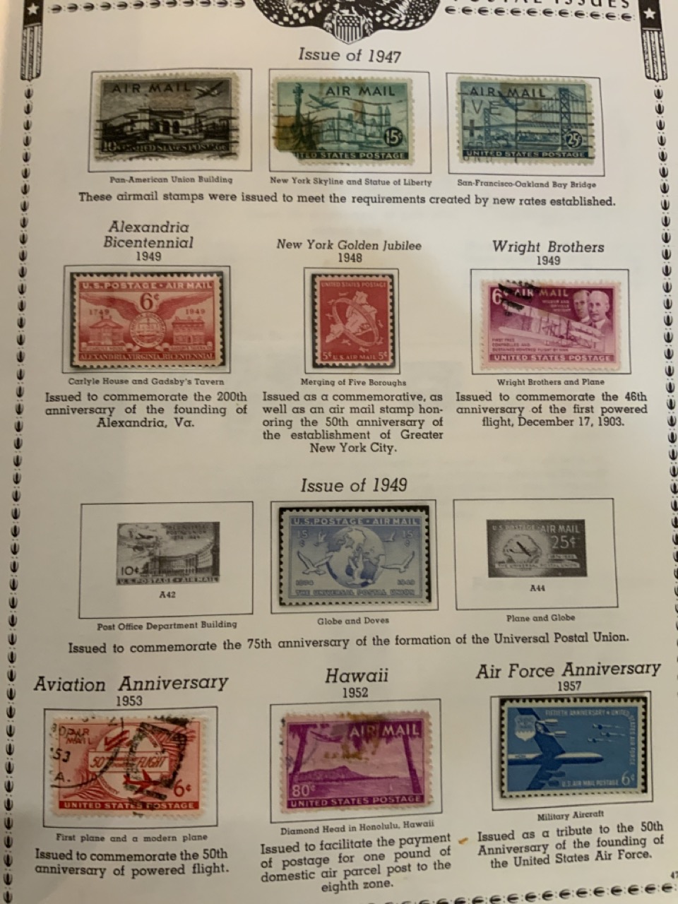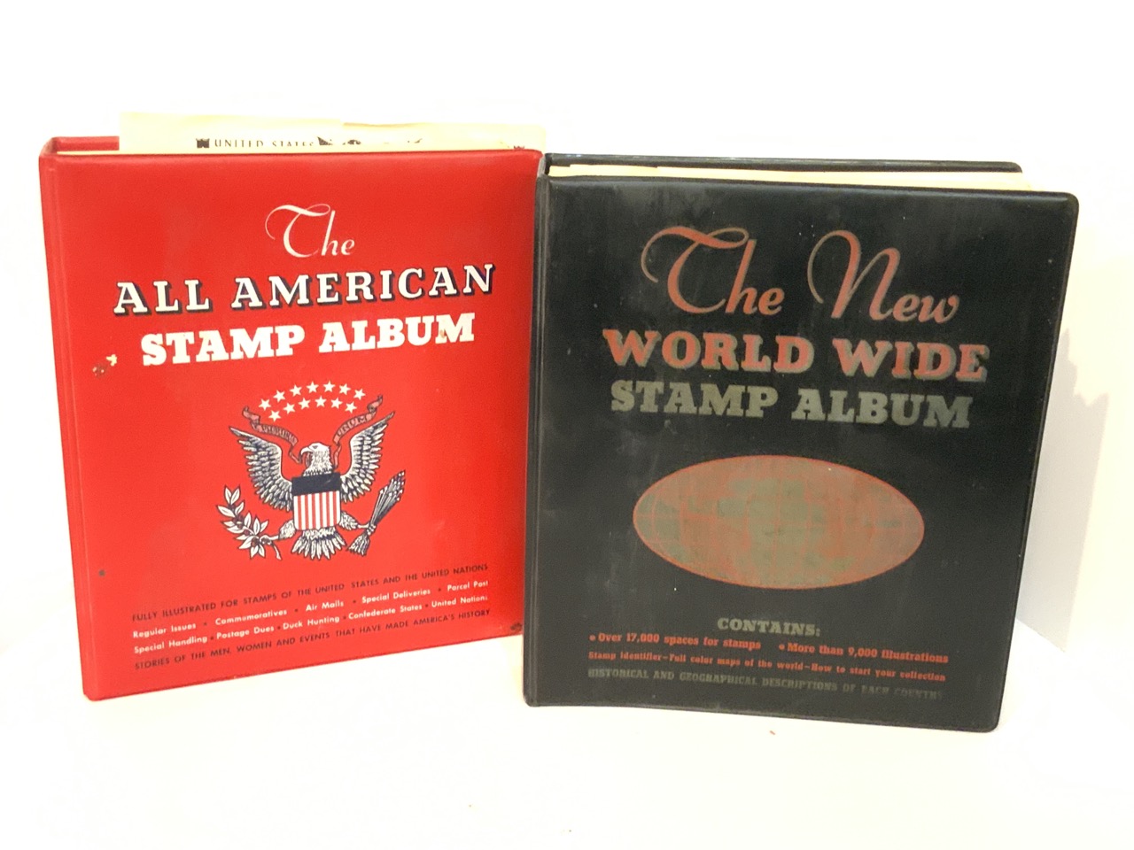 The All American stamp album and The New World Wide Stamp Album contents.