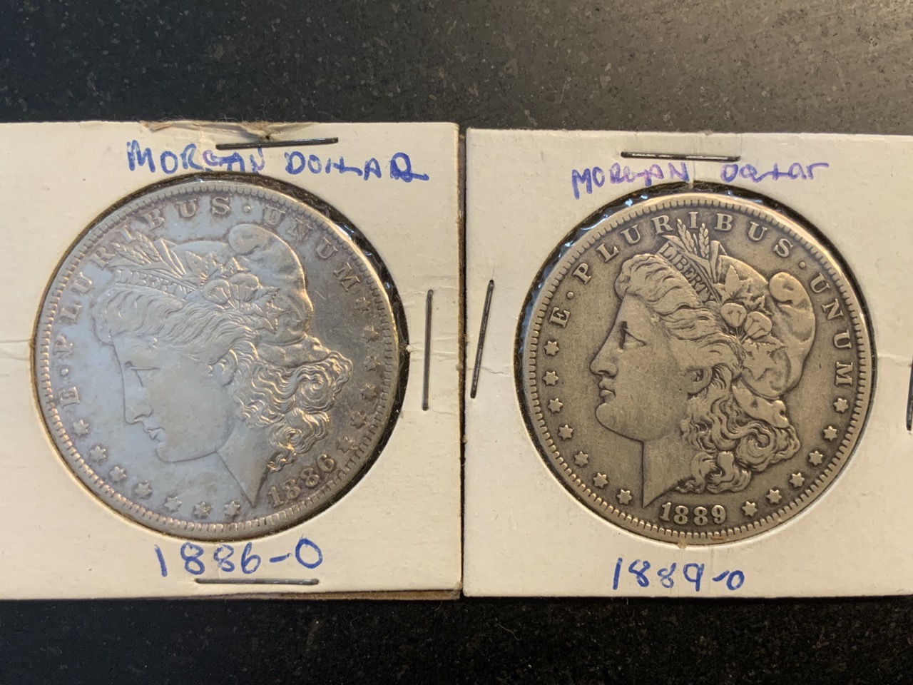 Two (2) U.S. Morgan U.S. silver dollars. 1886 and 1889 O Mint.