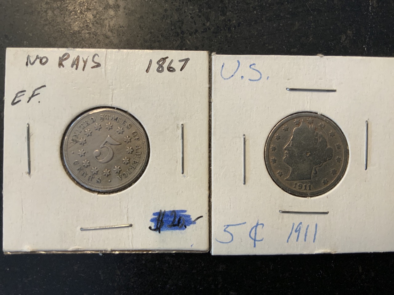 Two (2) U.S. Nickels 1867 and 1911.