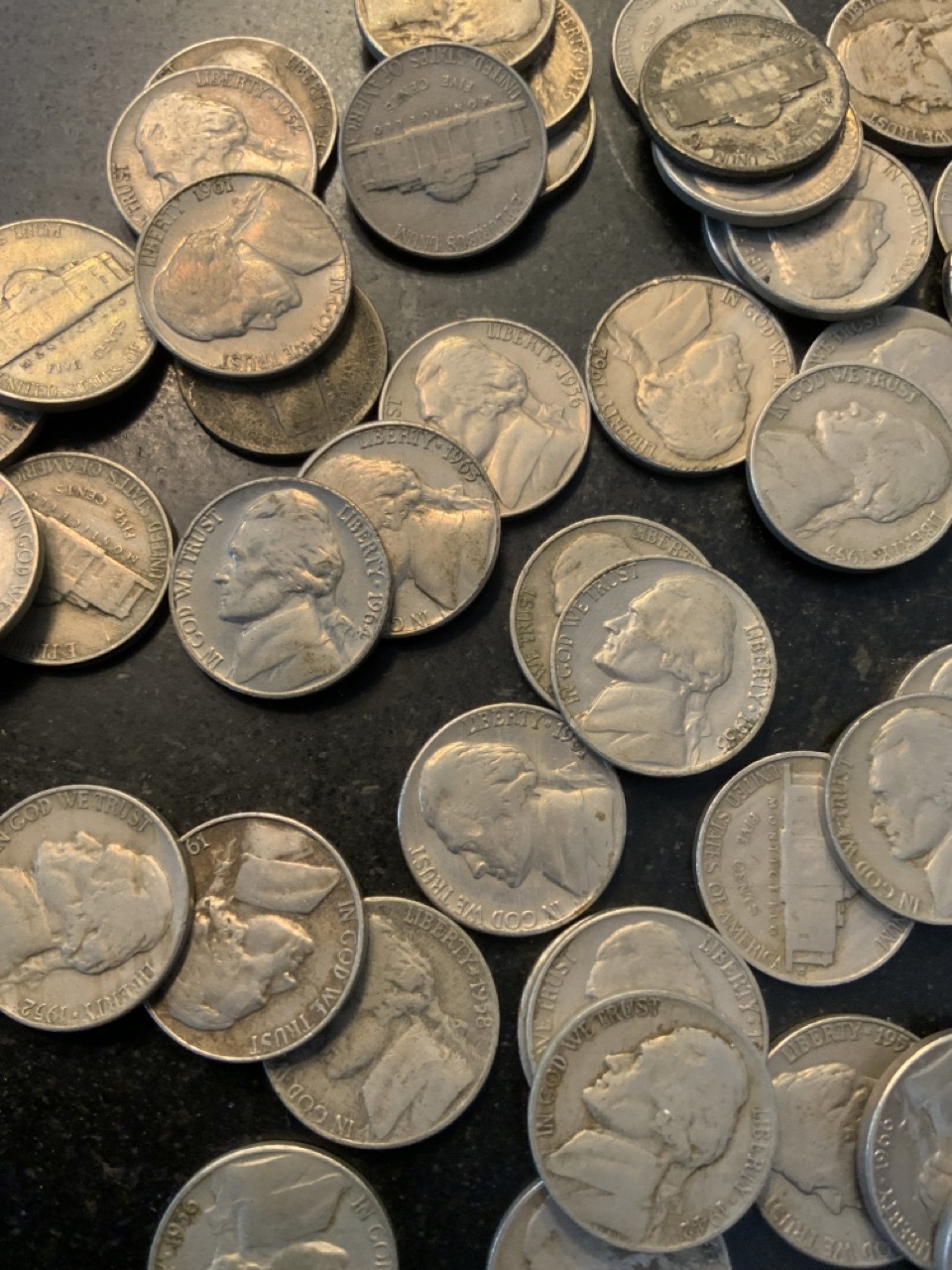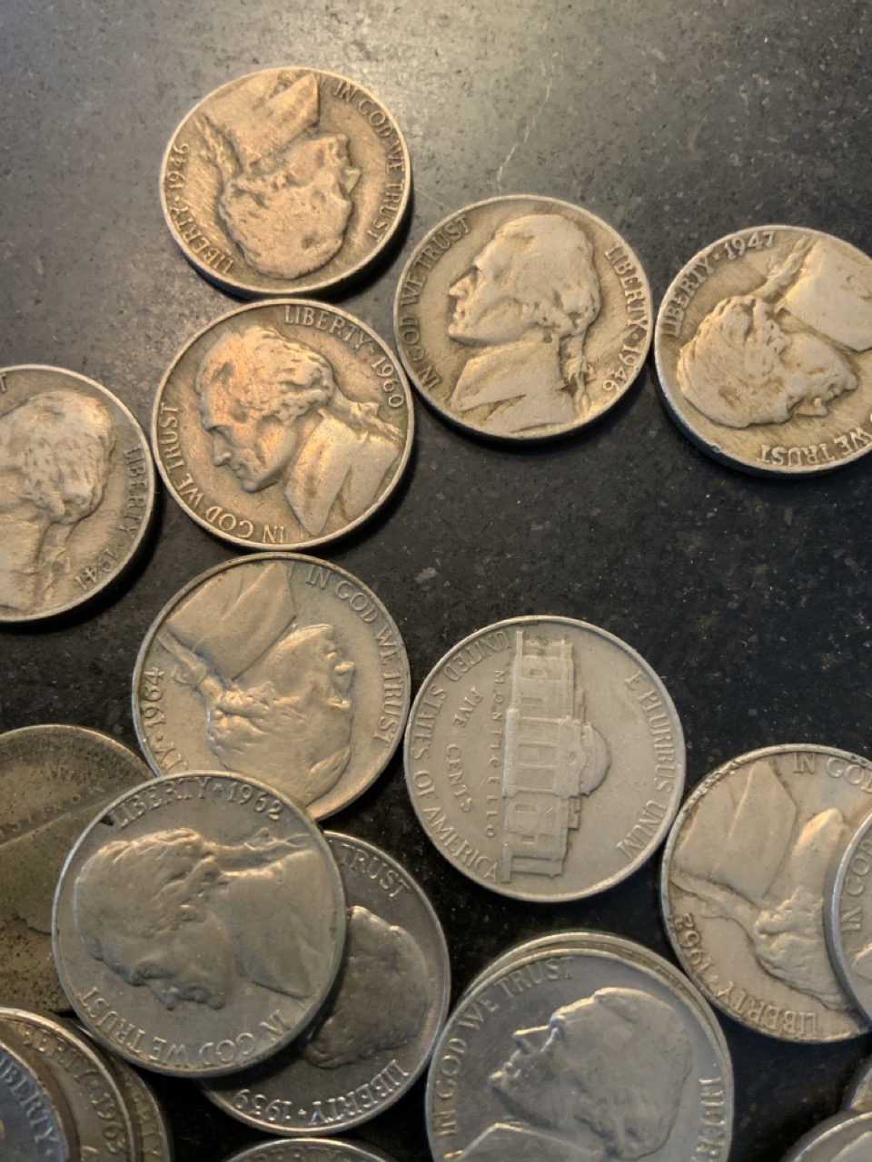 Assorted estate compiled grouping of U.S. Jefferson Nickels. As seen in photograph preview.