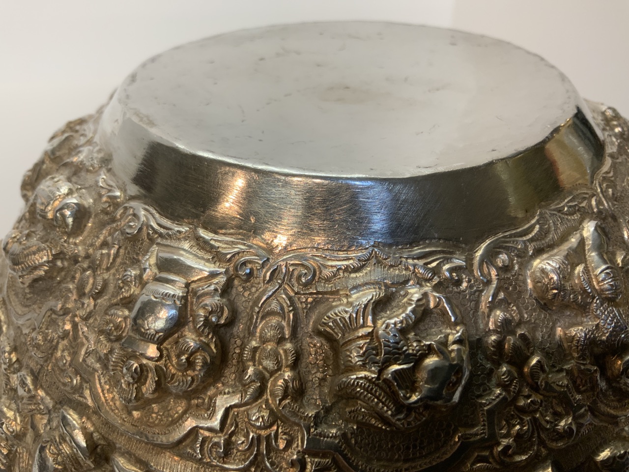 Highly ornate Persian silver bowl.