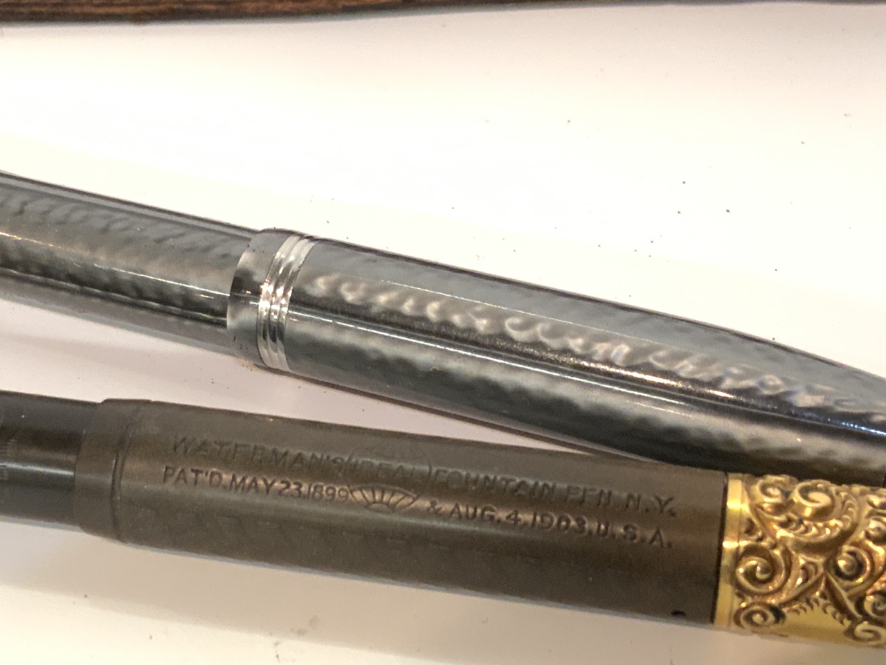 Two fountain pens. Estherbrook and Waterman's Ideal. Estate found patented May 23, 1899 & August 4, 1903 with leather pouch. Good condition.