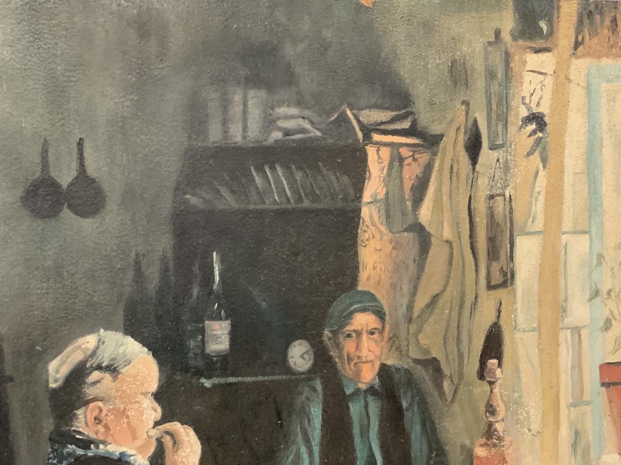 A WPA error scene with man and wife seated at kitchen tablle having a drink.