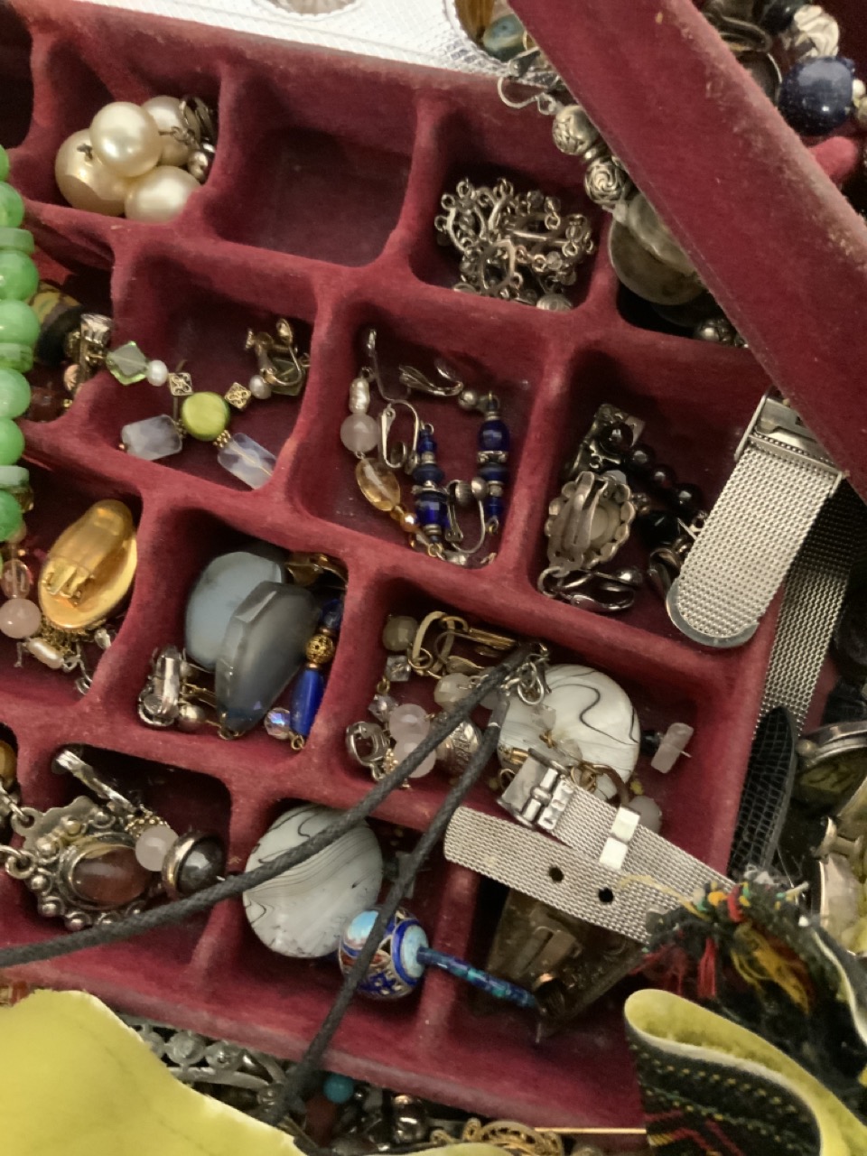 Estate compiled grouping of all costume jewelry. As seen in photograph preview.
