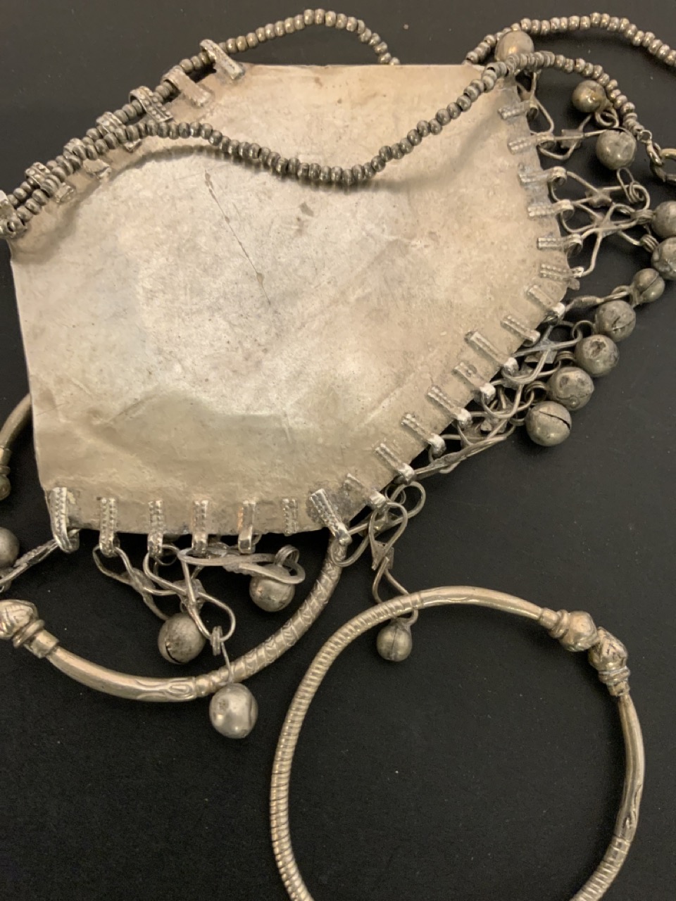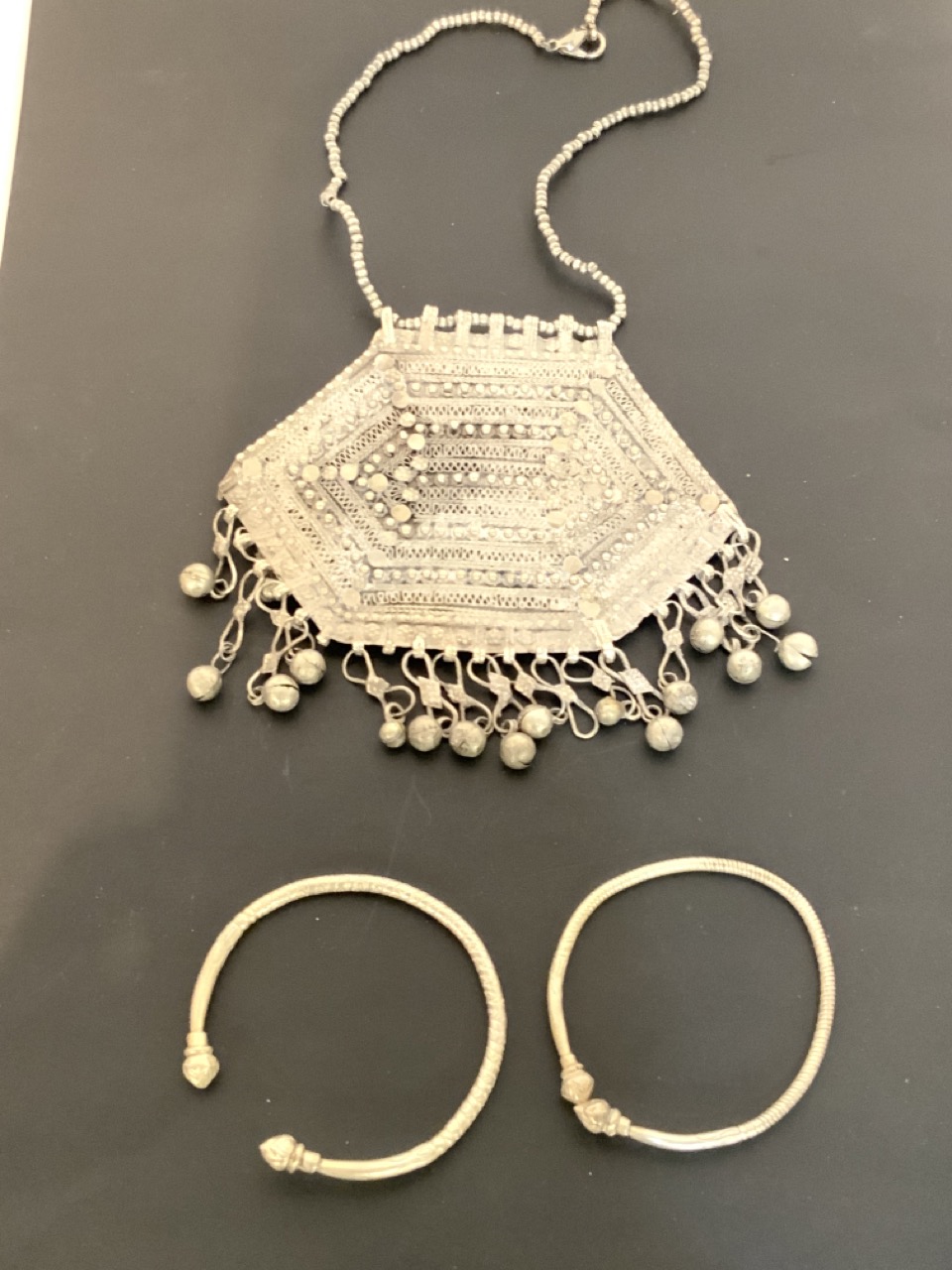 Large Persian Mid Eastern silver medallion necklace and bracelets.
