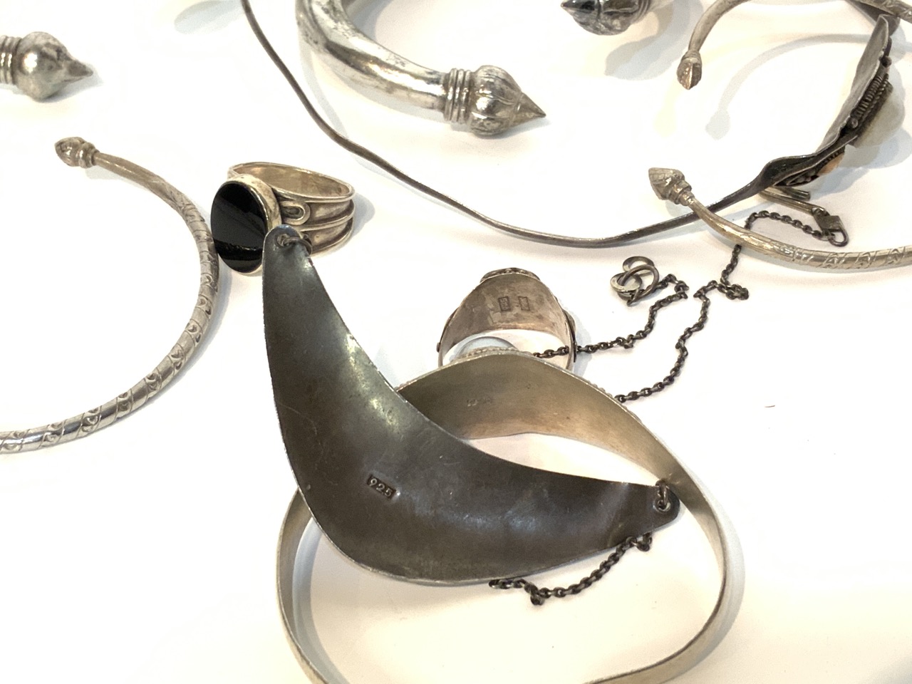 Estate compiled grouping of all silver jewelry.