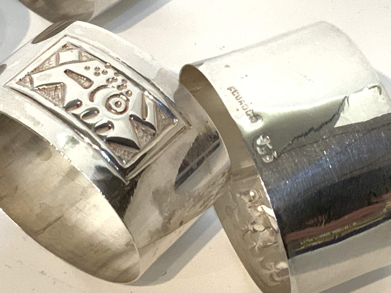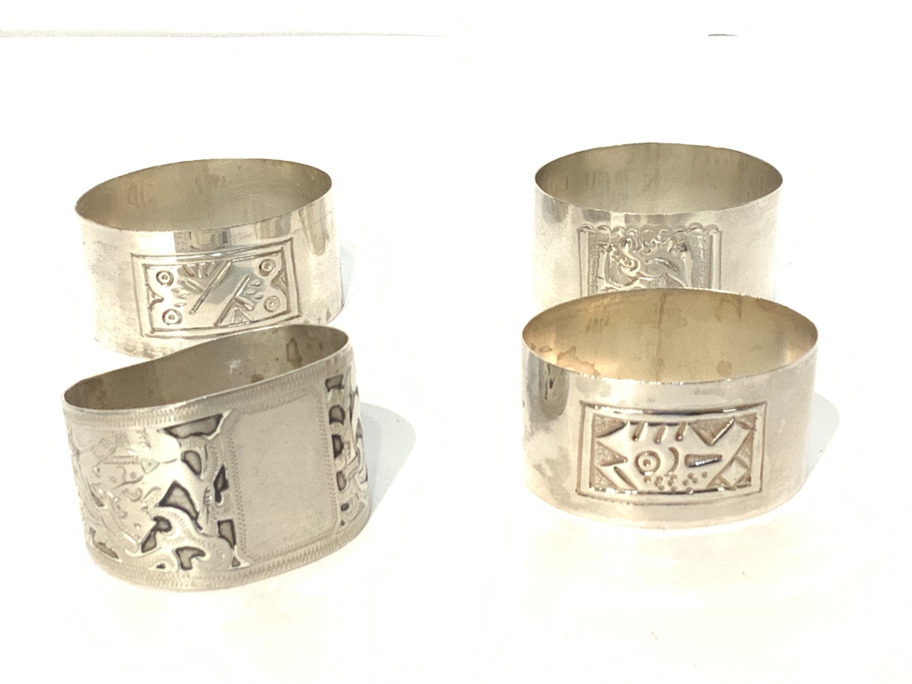 Four (4) Sterling silver napkin rings. From Ecuador and Guatemala.