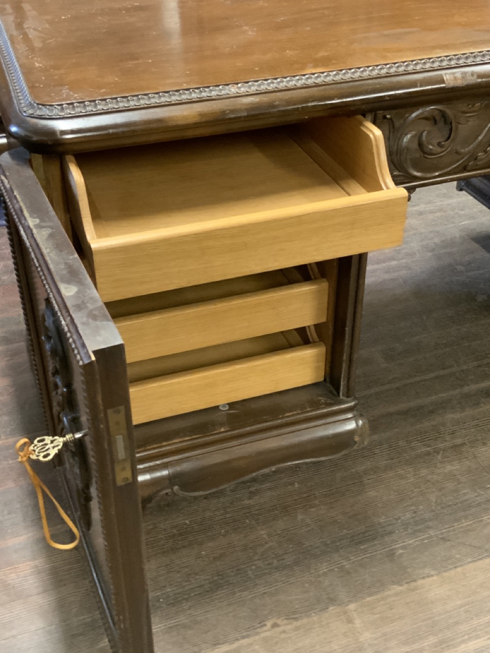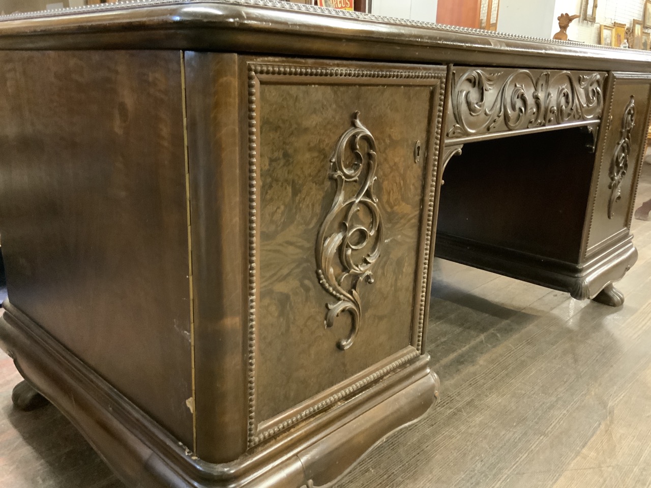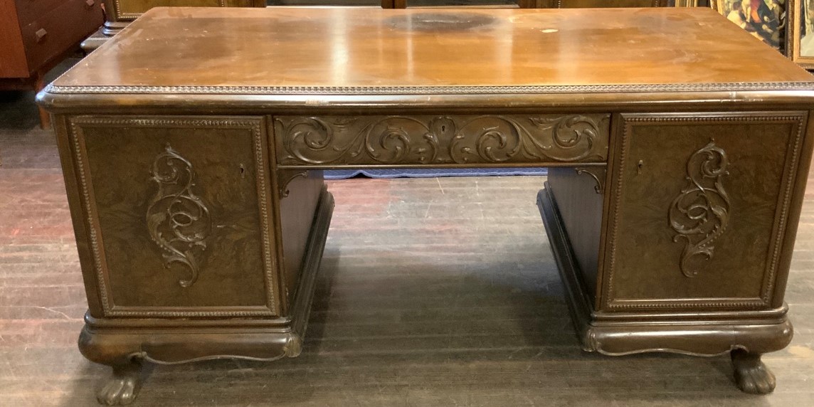 German Baroque style oversized carved desk.