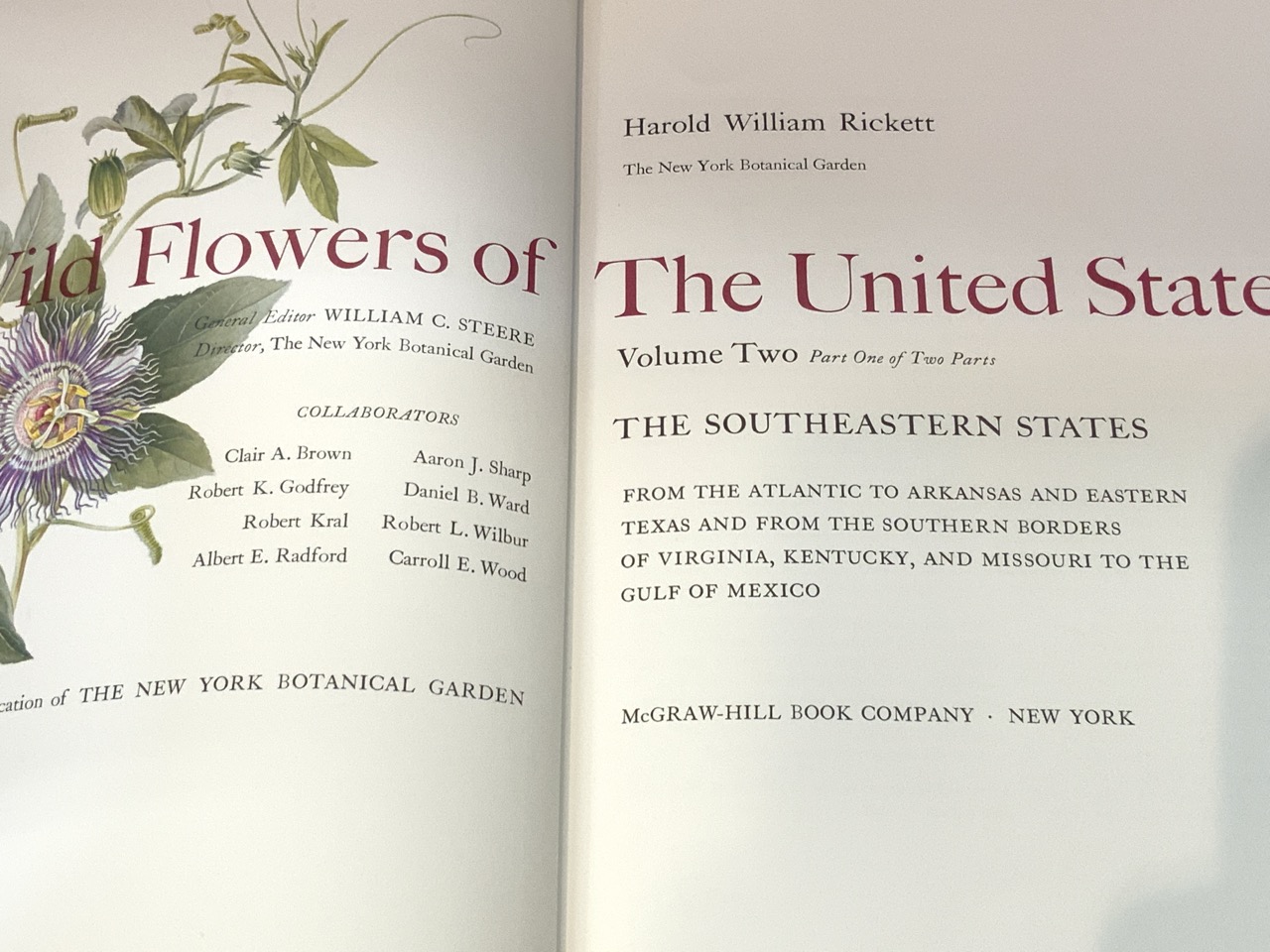 Rickett, Wildflowers Of The United States Volume II in part one and two. "Southeastern States" McGraw-Hill 1st Edition. Illustrated with color plates. Very good with dust box.