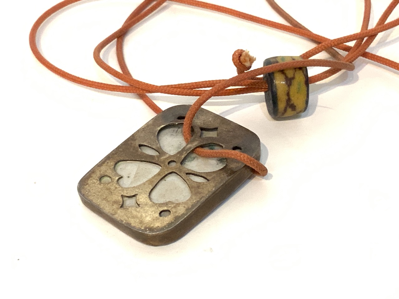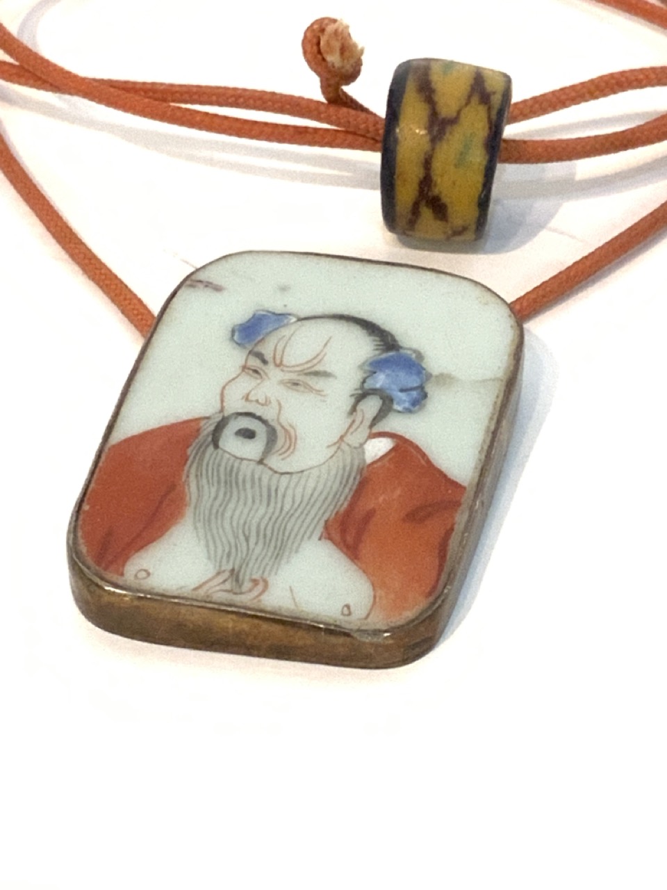 Chinese porcelain portrait pendant with cord..