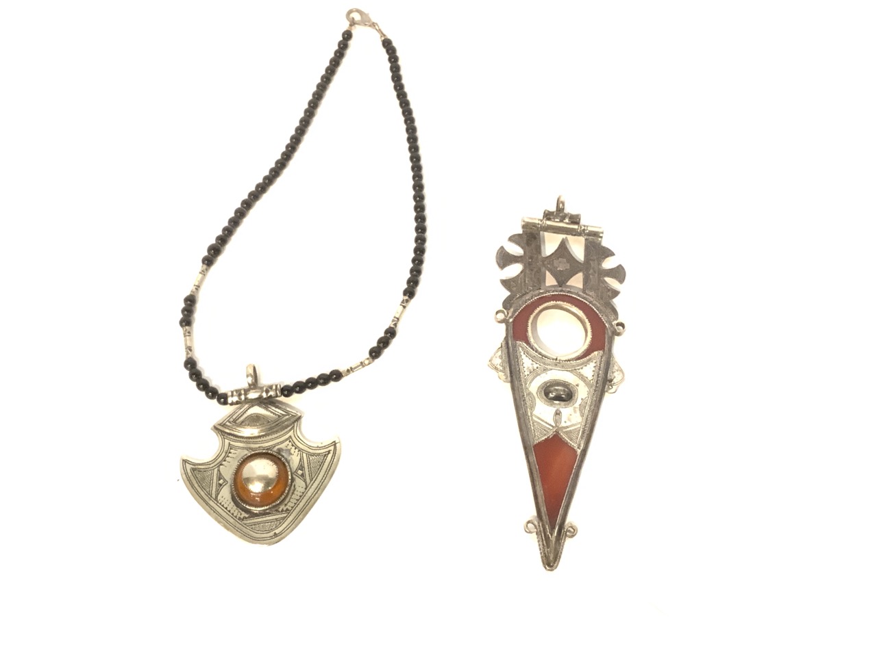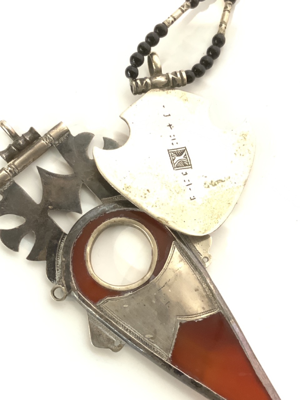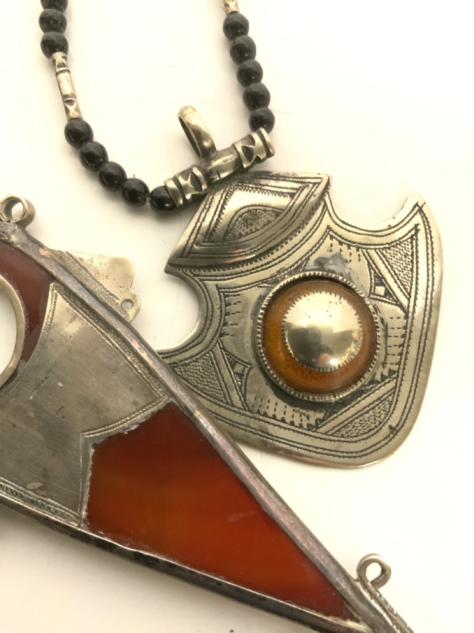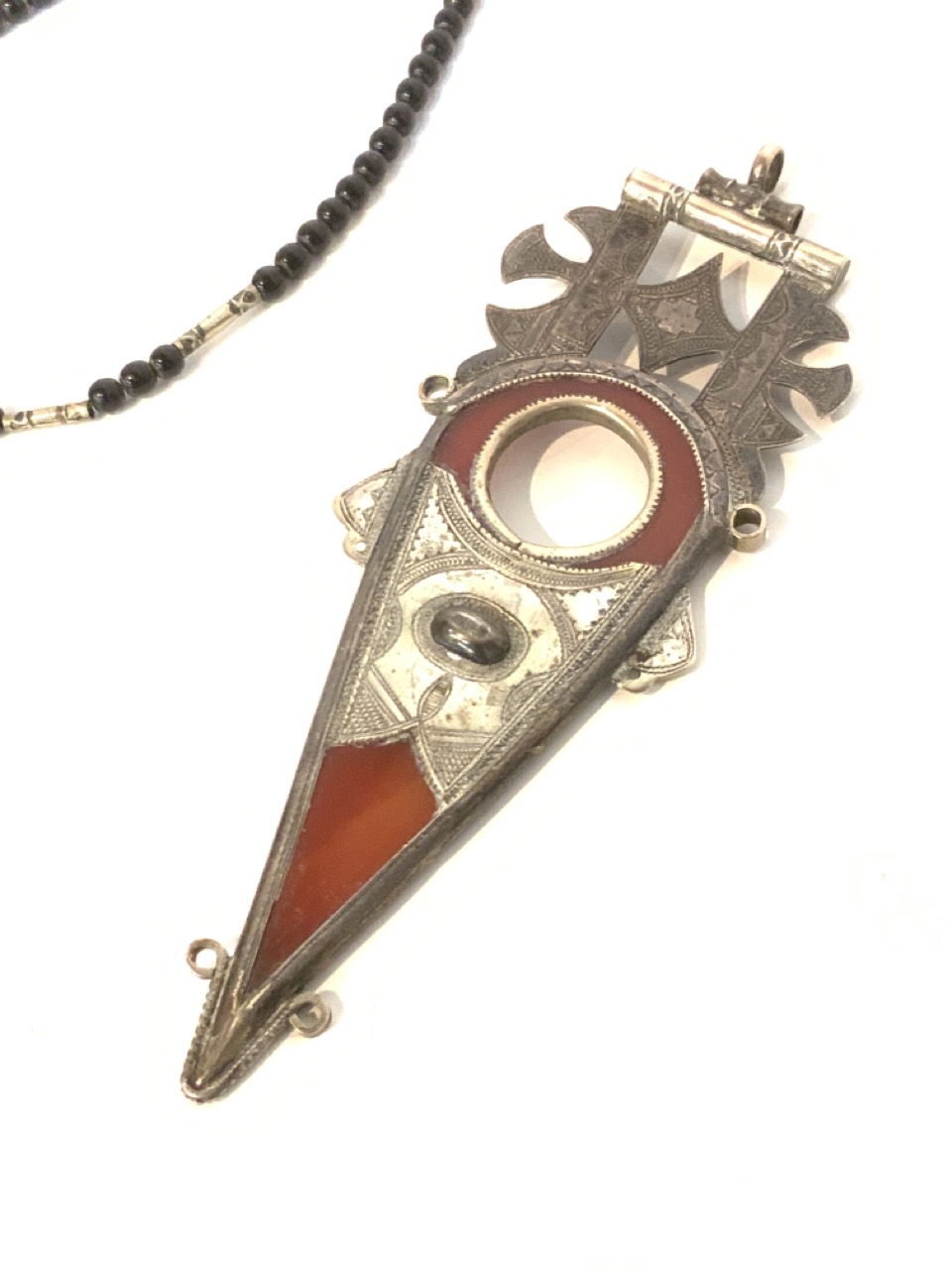 Tuareg carnelian spear silver pendant and necklace with pendant.