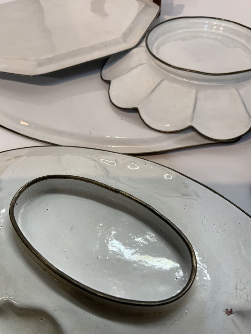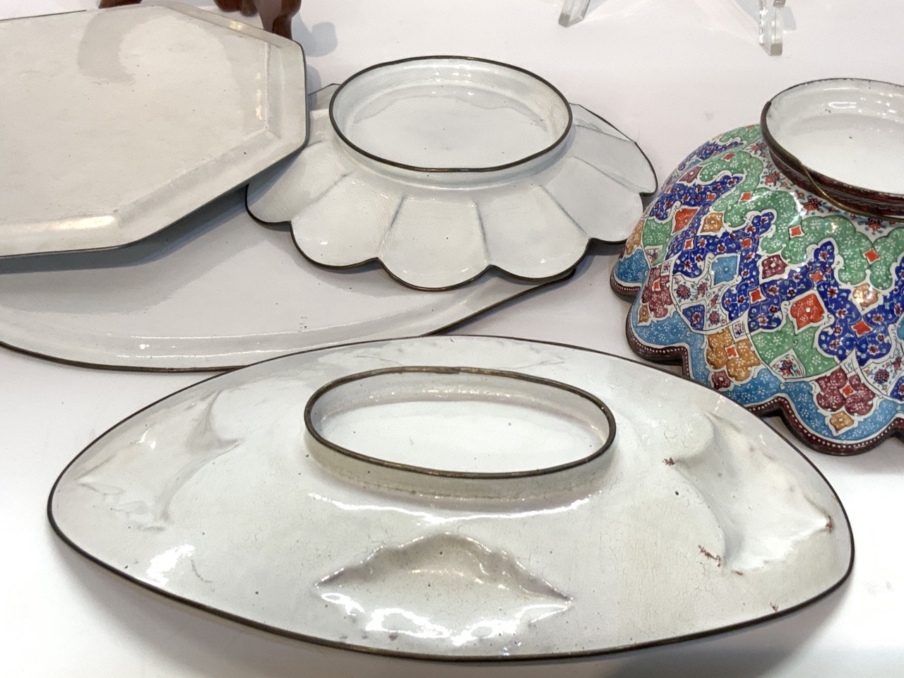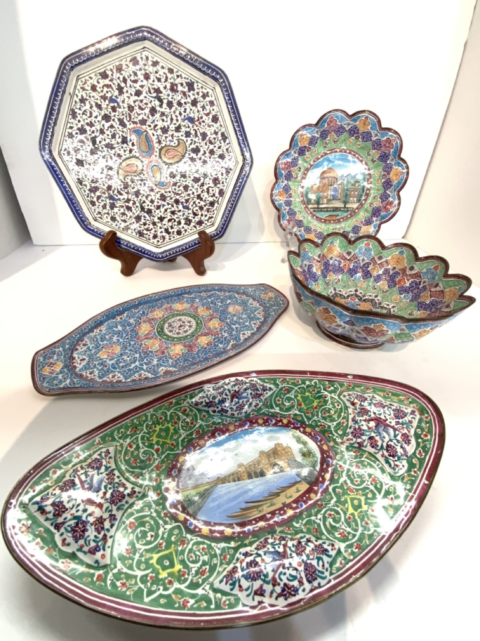 Five (5) piece Iranian (Persia) enamel serving pieces and trays.
