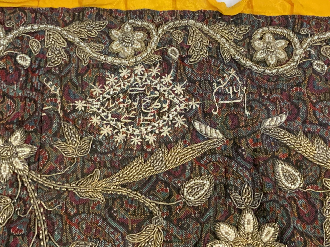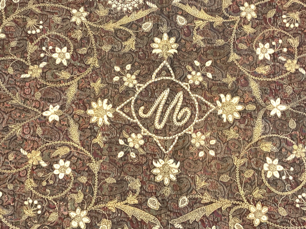 Exceptional late 19th or early 20th century signed Persian silk embroidery work. M monogram at center.